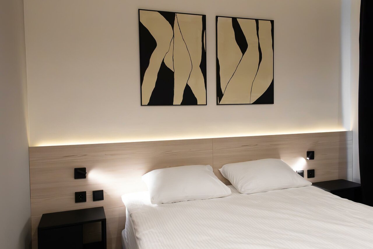 Отель понравился,находится в жилом доме,сами номера на втором этаже,есть кухня,можно все самим приготовить,в номере чисто,красиво,мягкая кровать и подушки,прям стильно,чайник,чай и кофе,в сравнении с другими отелями,но звезду снижаю за шум ночью при открытии форточки идет сквозняк и все шумит,гудит,выспаться не удалось,к сожалению,в номере не хватает ведра для мусора,оно есть только в туалете,вообщем впечатления от красоты и уюта остались яркими,все равно при выборе отеля он останется первый,надо пробовать,может в других номерах нет такого шума)Спасибо!