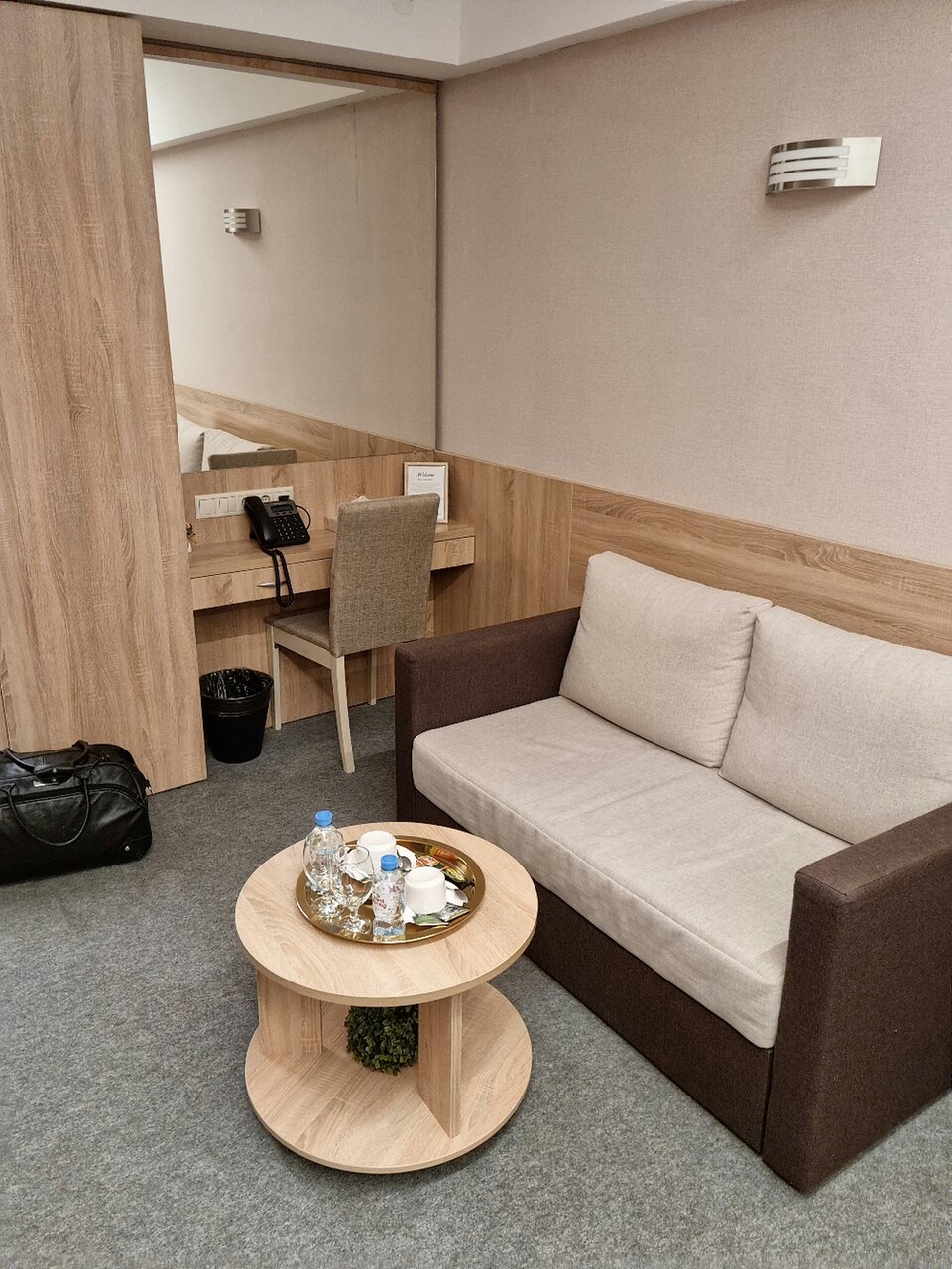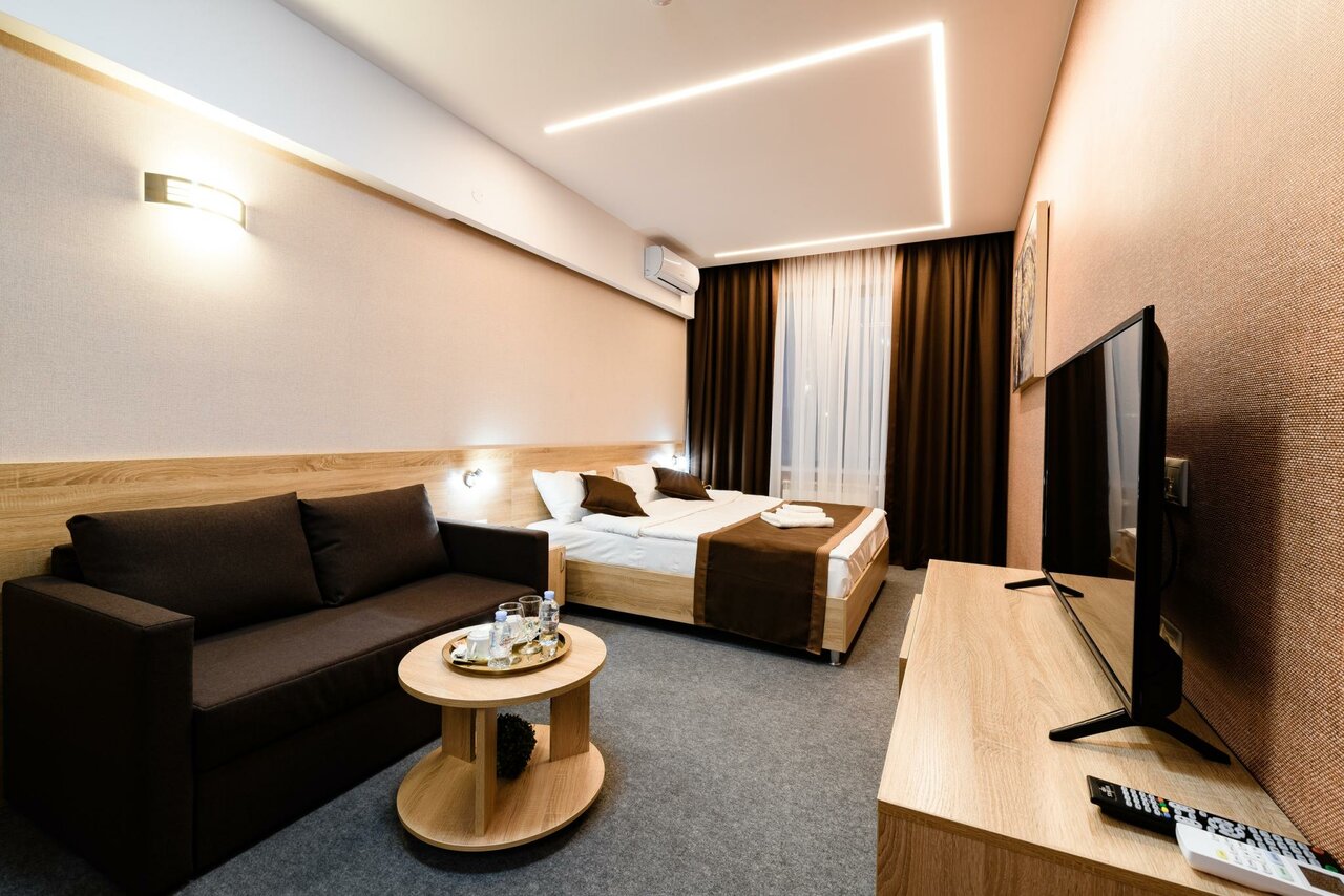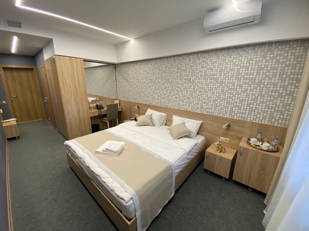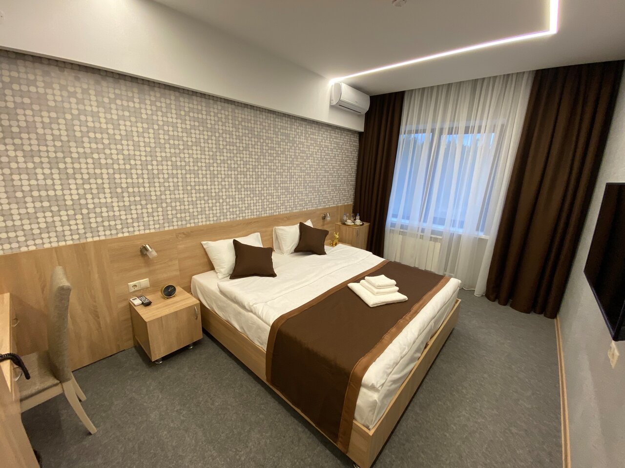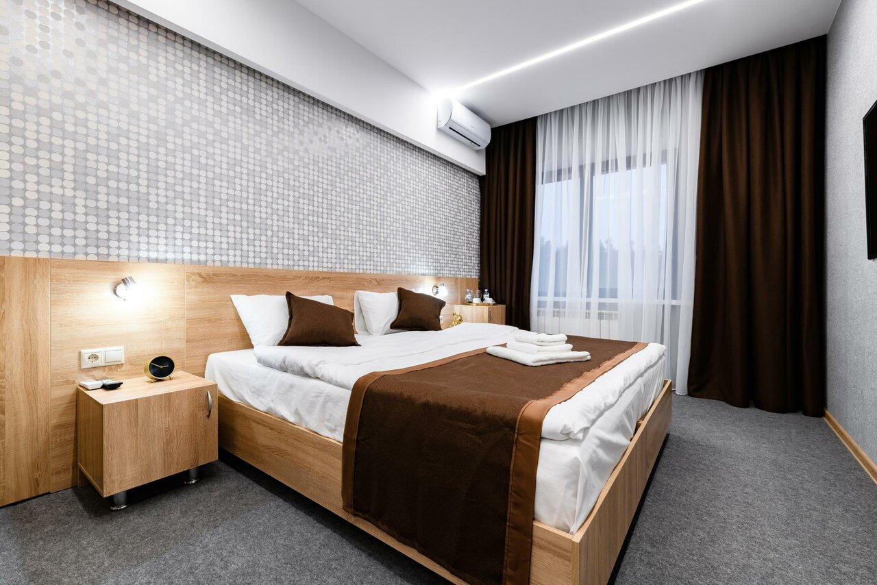 Хороший просторный номер. В номере есть всё необходимое — полотенца, тапочки, фен, всё для гигиены. Девочки на рецепе все очень приветливые! Есть ресторан. Везде чистота и порядок. Есть парковка. Так же завтраки есть, выбор маленький, но вкусно. Рекомендую!