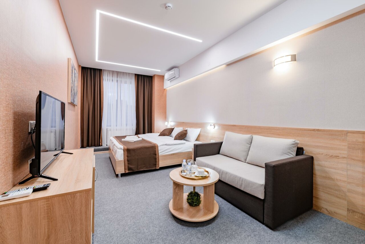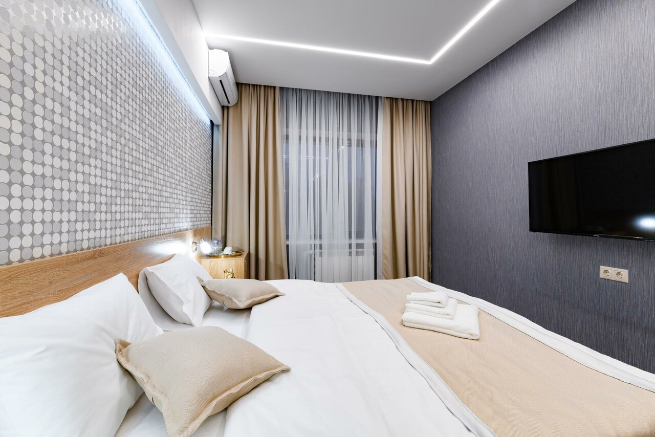 - Стильный ремонт и чистота.; Вежливый и гостеприимный персонал.; Наличие парковки (иногда охраняемой).; Хорошее расположение (магазины, ресторан, доставка еды рядом).; Просторные и светлые номера.