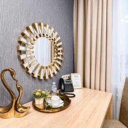 - Полная комплектация номеров (гигиенические принадлежности, фен, холодильник, кондиционер).