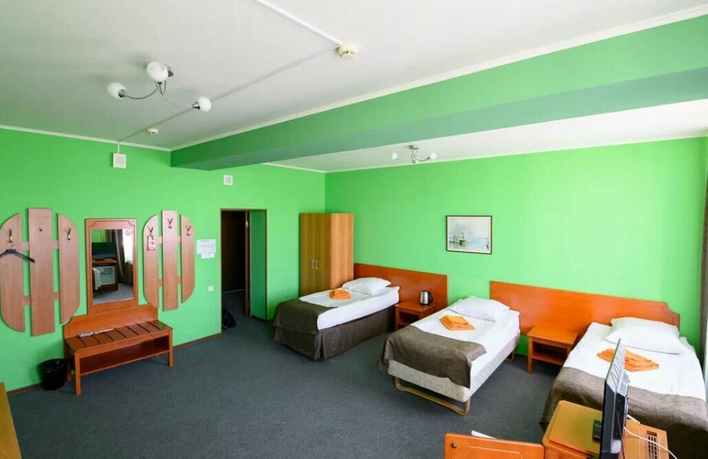 Старая неуютная гостиница, которая ещё и народится абсолютно неудобно. Номер неопрятный, вентиляция дребезжит. Стоит необоснованно дорого по сравнению с теми же ‘Лакшми’ и ‘Визит’ в которых все намного чище, аккуратнее и вежливее персонал. В этой гостинице девушка открыла мне дверь и высокомерно отвечала на или вопросы на пороге, в проходе, пока я сам не предложил пройти на ресепшен. Не рекомендую в общем к посещению.