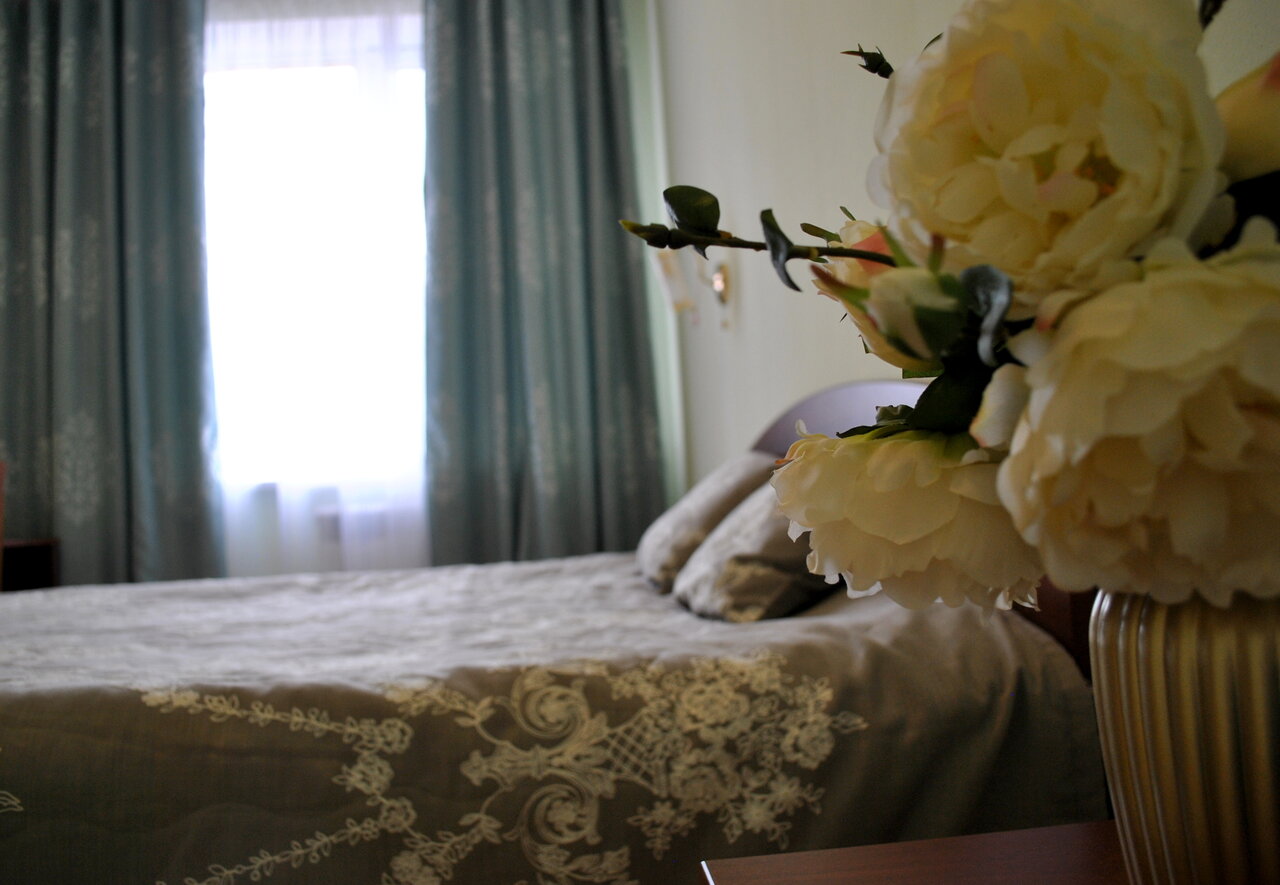 Прекрасный отель! Остались только положительные эмоции. Жили пять дней в уютном номере Ленинград .Ежедневно убирали, всегда чистое белье, запах свежести, очень приятно, когда так заботятся)) В номере имеется телевизор, мини-холодильник, фен по запросу, халат и тапочки очень к стати . Завтраки вкусные и сытные, выбор хороший, мы попробовали и блинчики и сырники, яичницу с беконом, и кашку на молоке. Спасибо за индивидуальный подход. Кафе для гостей всегда открыто и в любое время можно попить чайку с вкусняшками, а также угоститься свежими фруктами. Персонал доброжелательный и отзывчивый. Почувствовали себя, как дома)