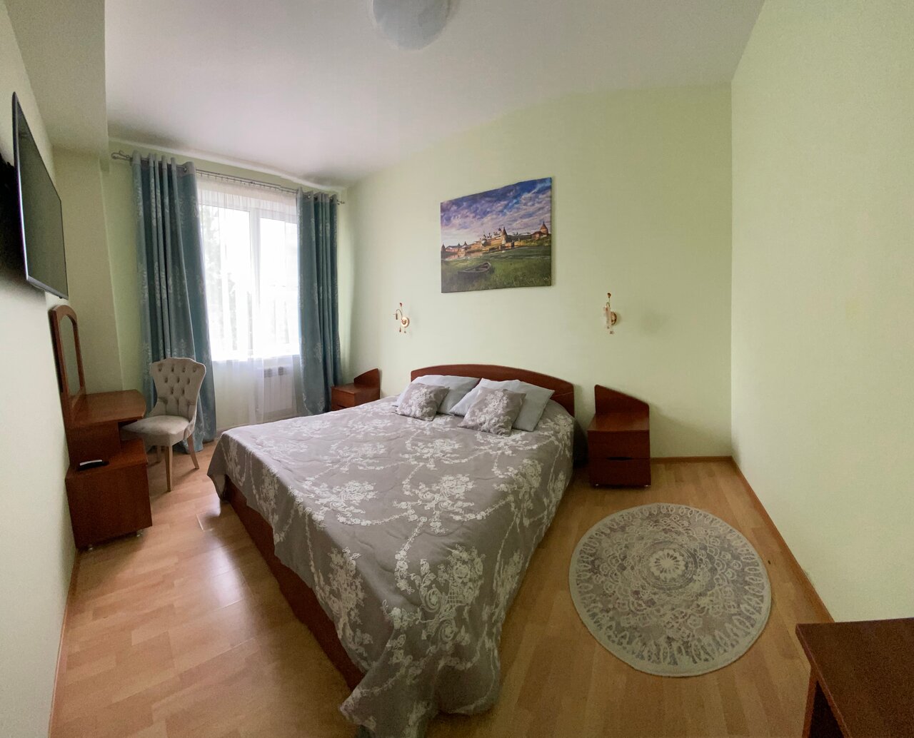 • 2 комнаты: спальня и гостиная• вмещает 1-2-3 гостя• широкая двуспальная кровать• ортопедические матрасы • персональный санузел с душем и туалетом• сейф