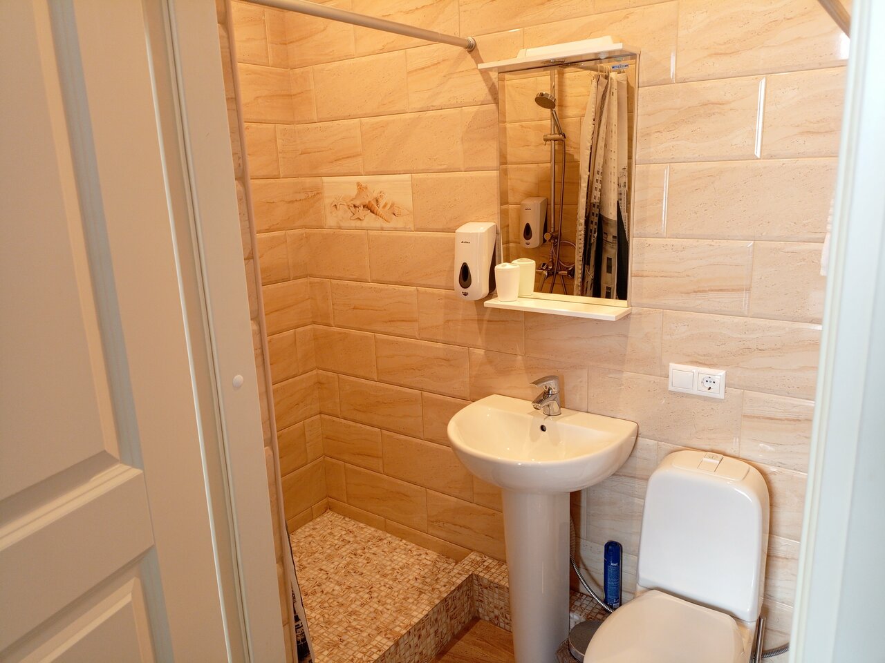 - Нет душевых принадлежностей.