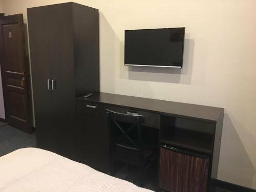- В номере есть всё необходимое (вентилятор, телевизор, холодильник).
