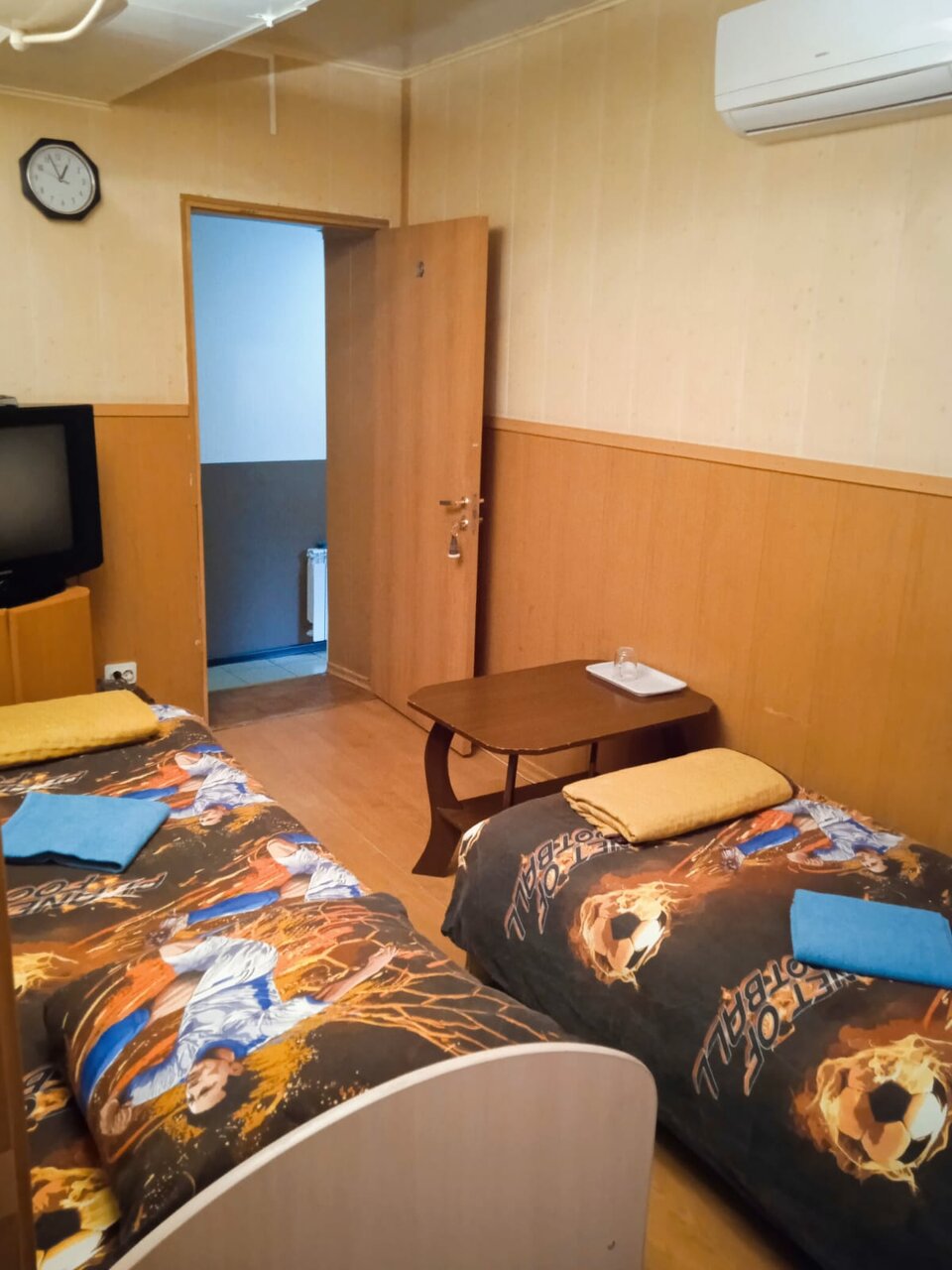 - Кухня для самостоятельного приготовления еды.; Микроволновка и кулер в шаговой доступности.; Недорого.; Приветливый и вежливый персонал.; Тепло в номерах.
