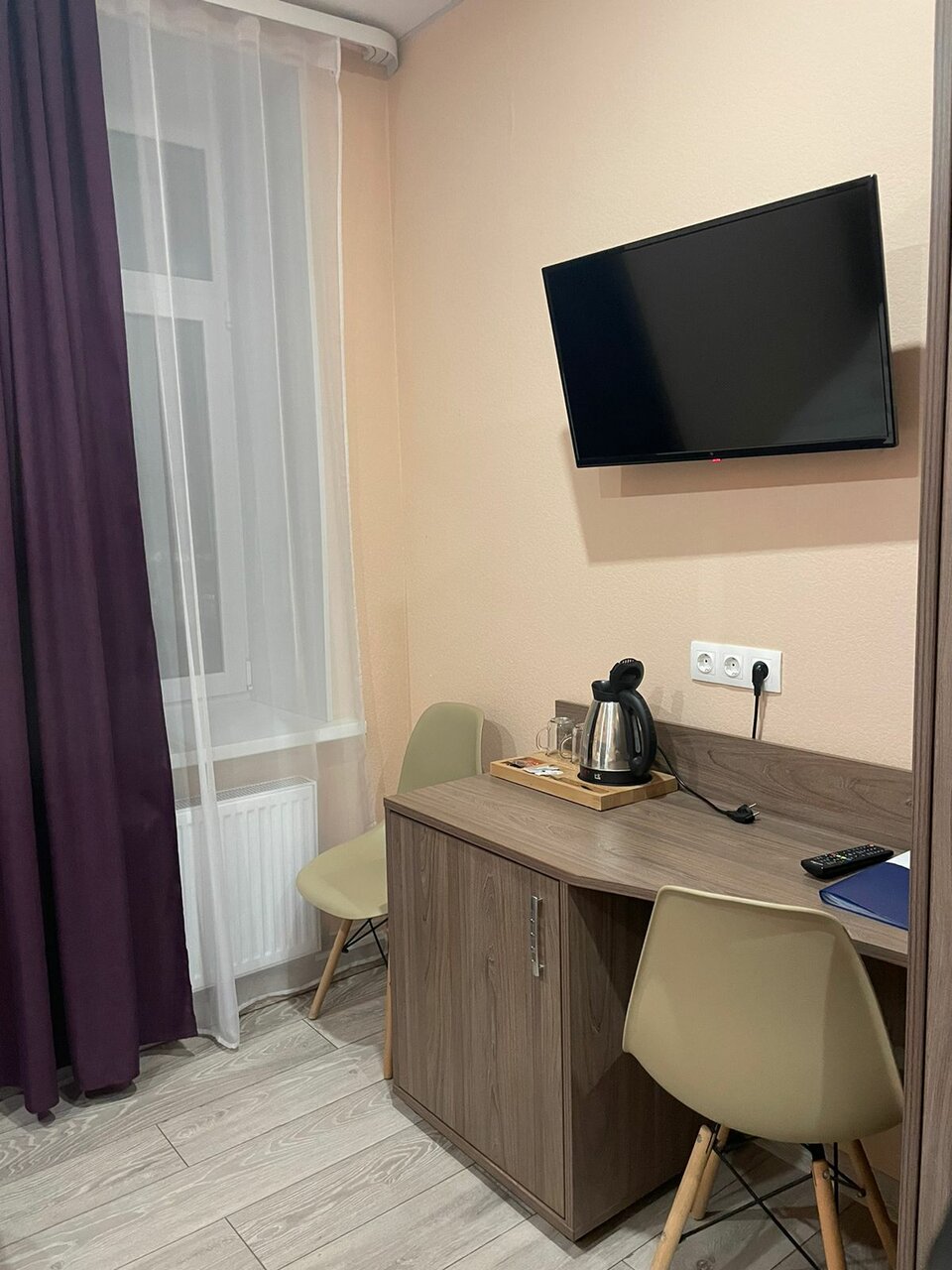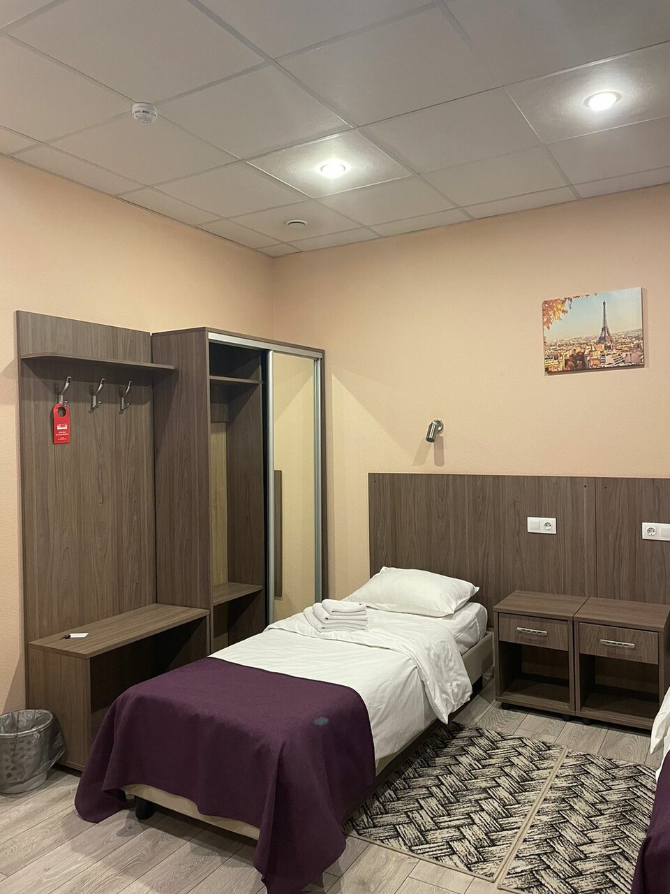 Скорее хостел, чем гостиница. В номере чисто. Но, кроме чайника и двух бокалов с двумя же пакетиками чая и сахара, нет из посуды ничего. Микроволновка в коридоре стоит, а греть в чем пищу? Холодильник маленький в номере, кулер с водой в коридоре — хорошо. Не понравилось, что место для курения находится рядом с выходом из здания, в паре метров и весь запах идёт в комнату, окна пропускают.