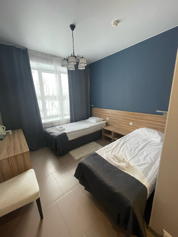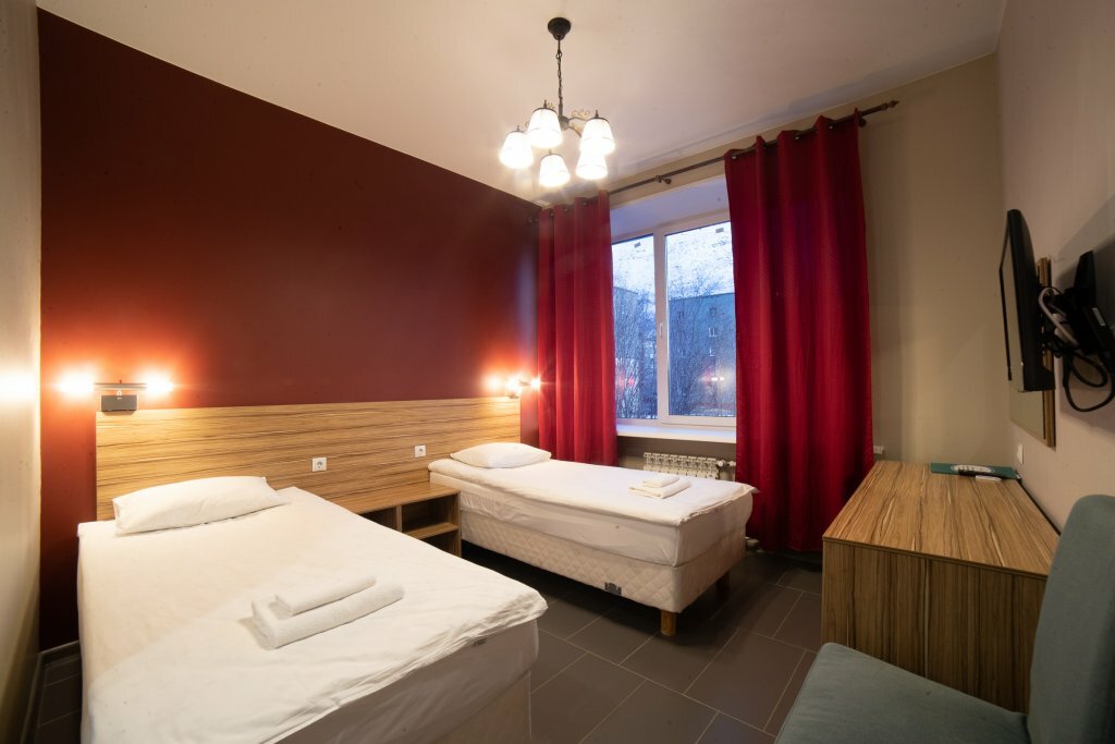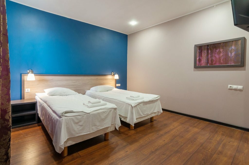 В номере санузел, сплит-система, телевизор.В номере две односпальные или одна двуспальная кровати. Также в номерах шкафы для одежды, тумбочки. Сан. узел с душевой кабиной. Возможно размещение дополнительного места. Стоимость зависит от периода прож