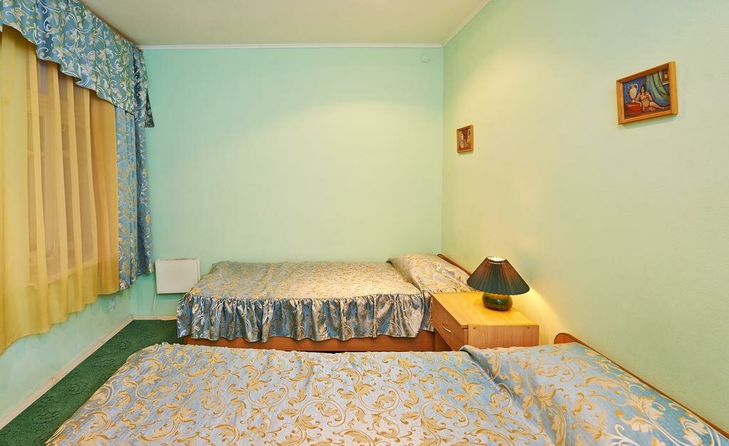 Уютный трёхместный номер с тремя односпальными кроватями.В наличии имеются номера с двумя комнатами.А также номера с одной общей комнатой, имеющей перегородку и коридор,разделяющие номер на две зоны отдыха.