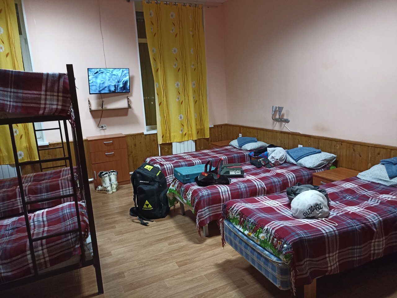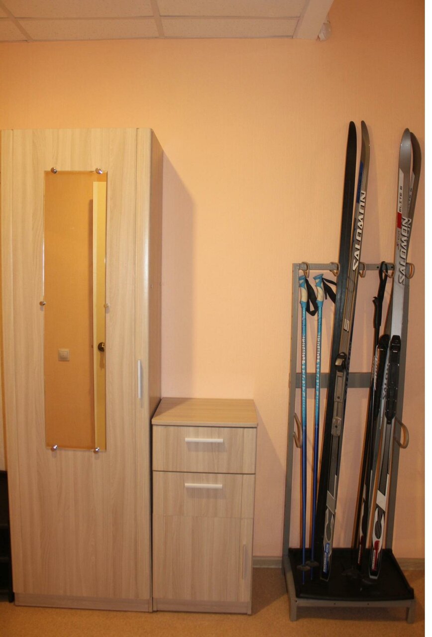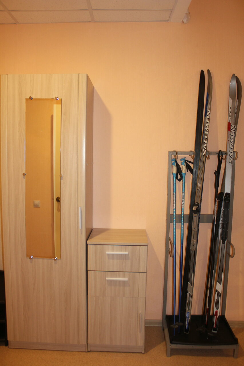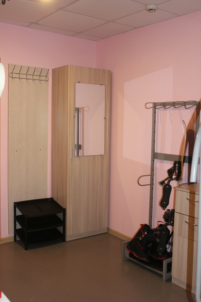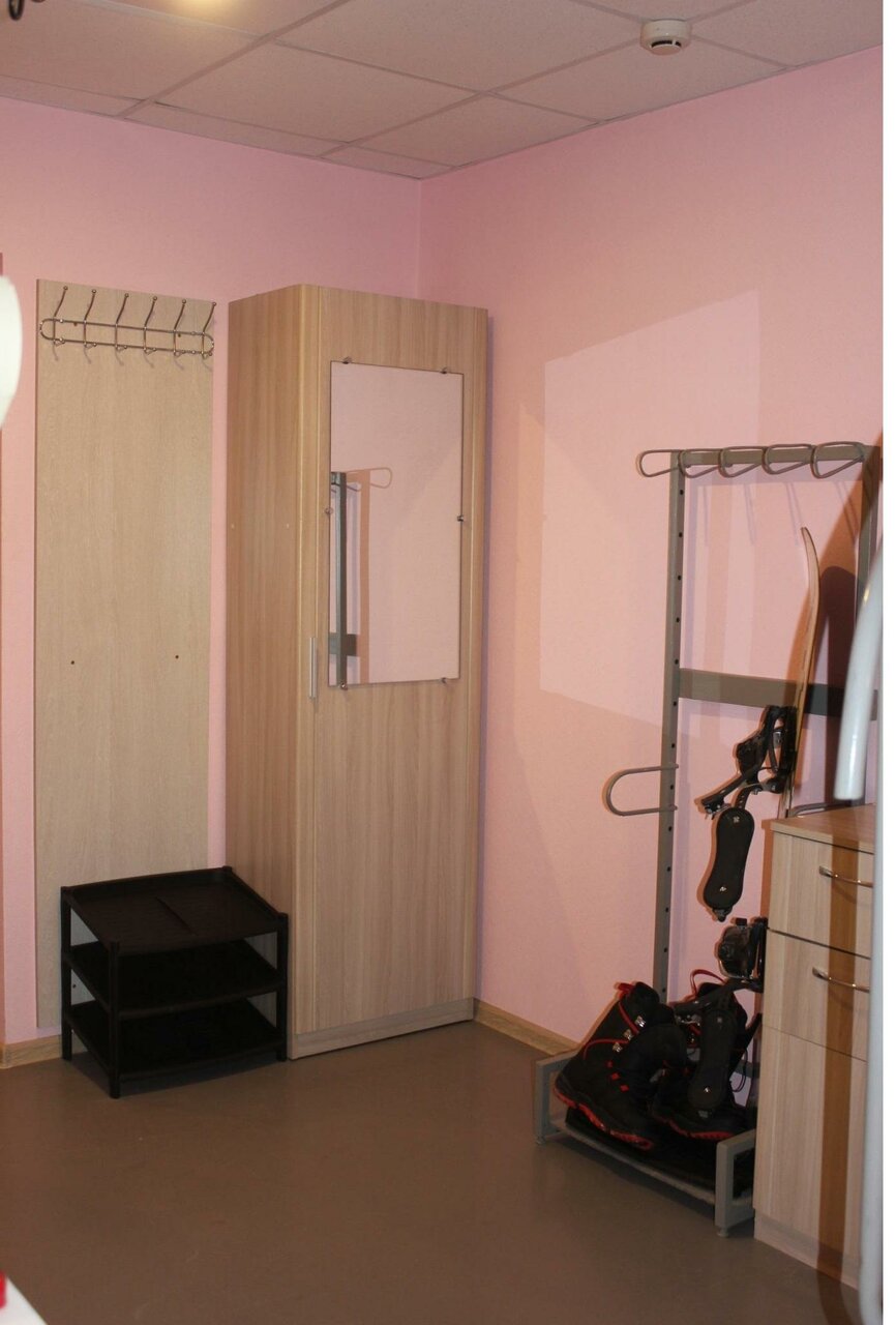 Очень хороший вариант для проживания, в том числе с детьми-школьниками, спортсменами. Есть просторная кухня со всем необходимым, душевые кабины, туалет, сушильная комната, где можно разместить инвентарь для просушки. При необходимости можно воспользоваться стиральной машиной. Всё чисто и ухоженно.