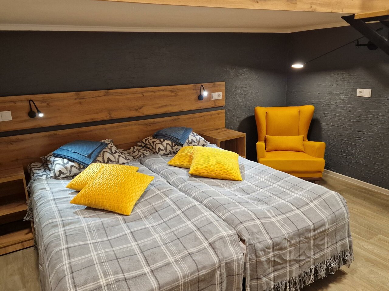 - Шикарные двухуровневые номера с винтовой лестницей.