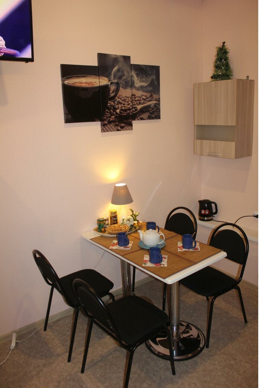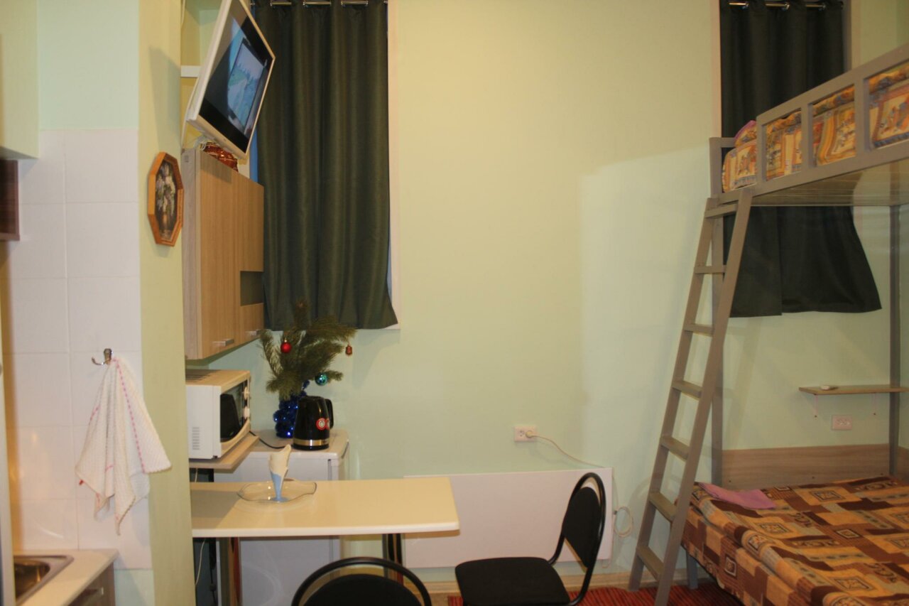 Минусов нет! Живем с товарищем третий день , все хорошо WiFi , телевизор, кухонная утварь, постилочная все имеется, даже чаем угостили