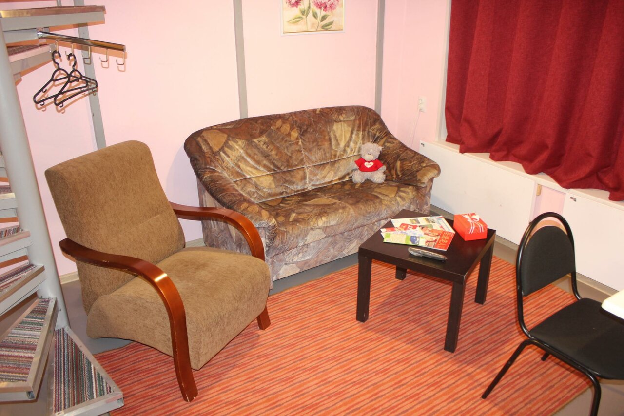 Хороший мини-отель! Жили в трехместном номере со спальными местами на ‘антресолях’. Тепло, уютно, чисто, приветливые и доброжелательные сотрудницы. В номере есть все для комфортного проживания! Место расположения в бывшей промышленной зоне, но она благоустраивается. Вид из окна на горы замечательный!