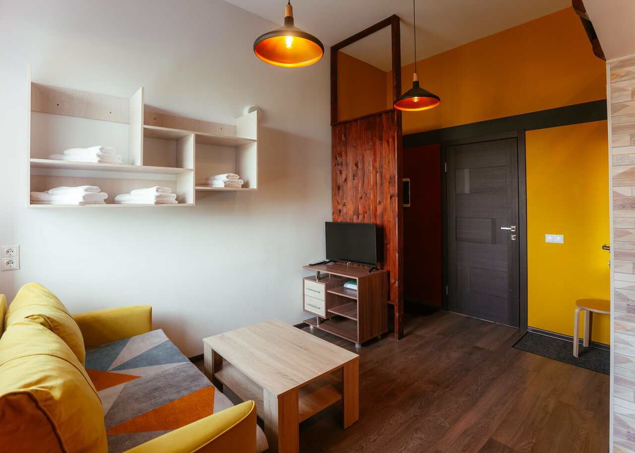 - Необычные и удобные номера (например, двухъярусная кровать).; Наличие кухонной зоны и посуды.; Уютное место для отдыха.; Хорошее расположение (близко к склону, достопримечательностям).; Чистота и аккуратность.