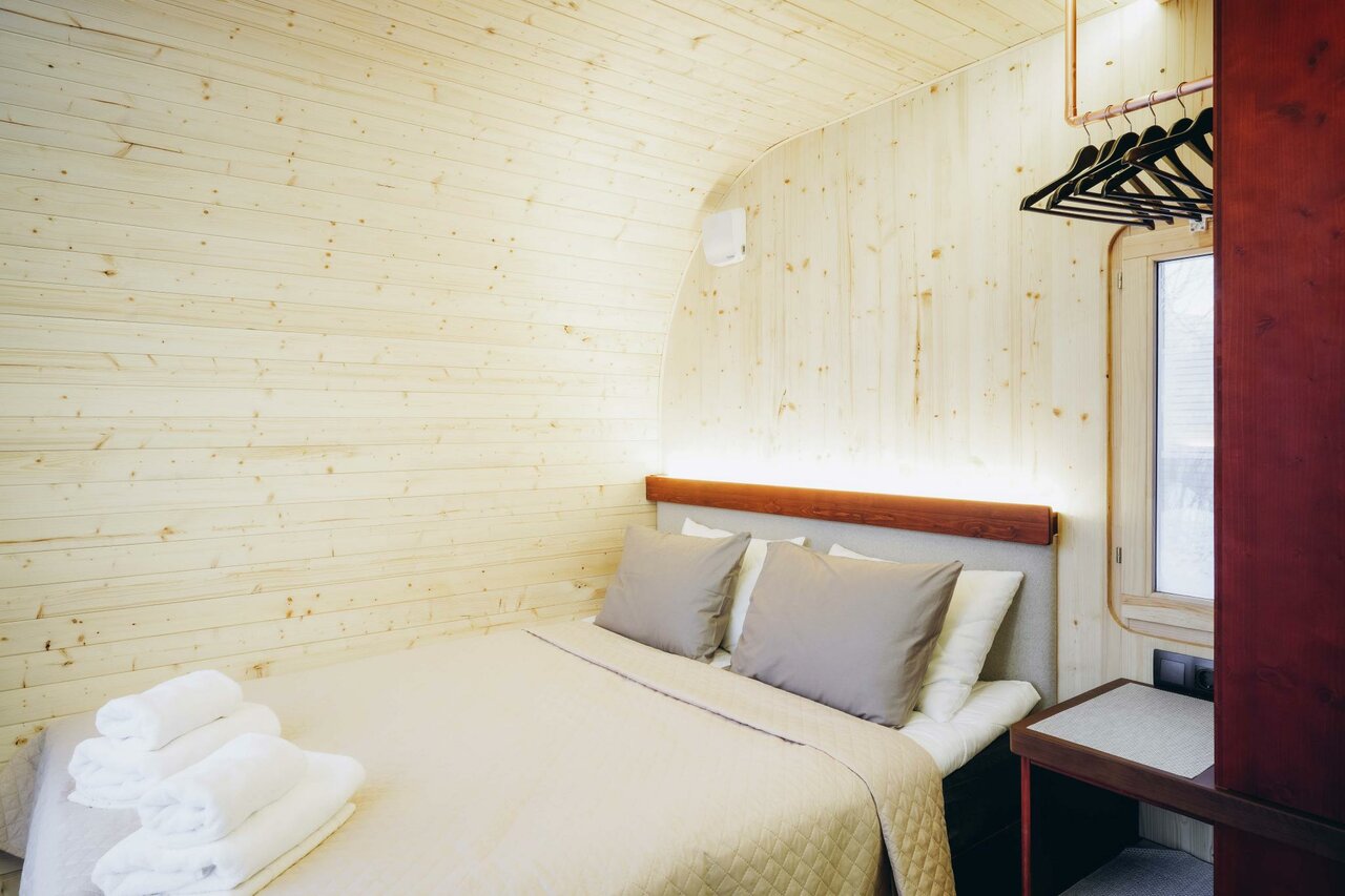 Модульный дом с панорамным окном во дворе отеля Powder - возможность совместить уединенный отдых со всеми преимуществами отеля. В шаговой доступности от Северного склона. Актуальные цены и наличие мест уточняйте при бронировании.