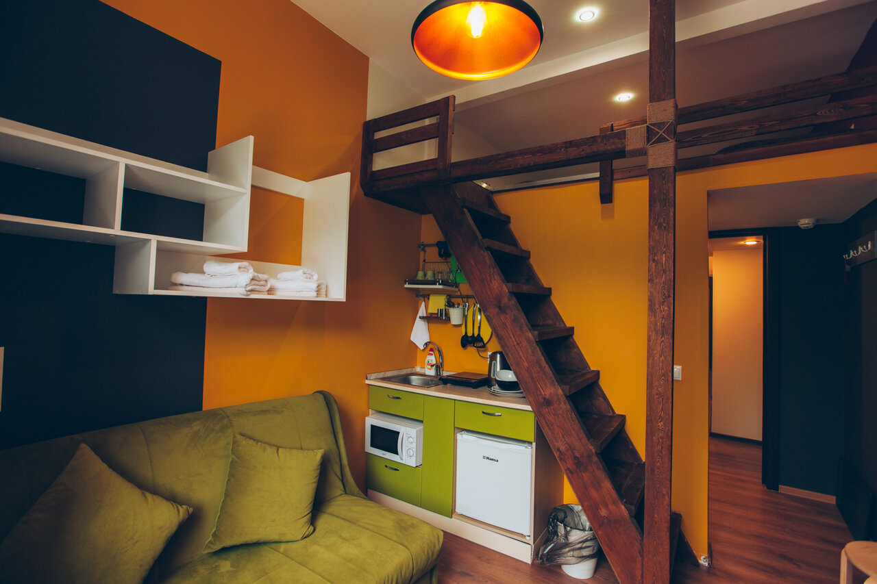 Уютные двухуровневые апартаменты с собственной кухней и ванной комнатой ( до 4-х гостей) Актуальные цены уточняйте при бронировании