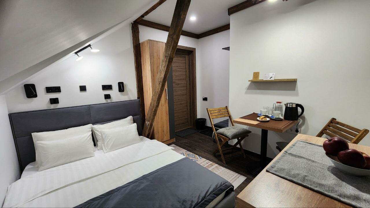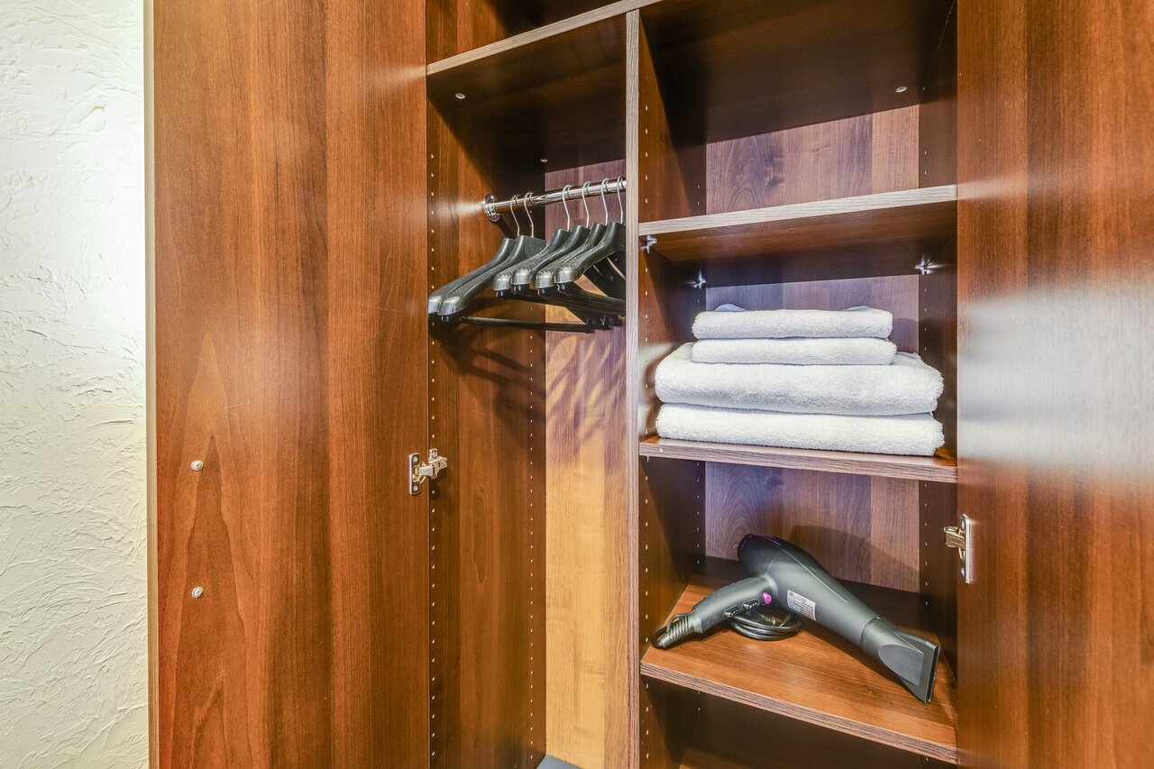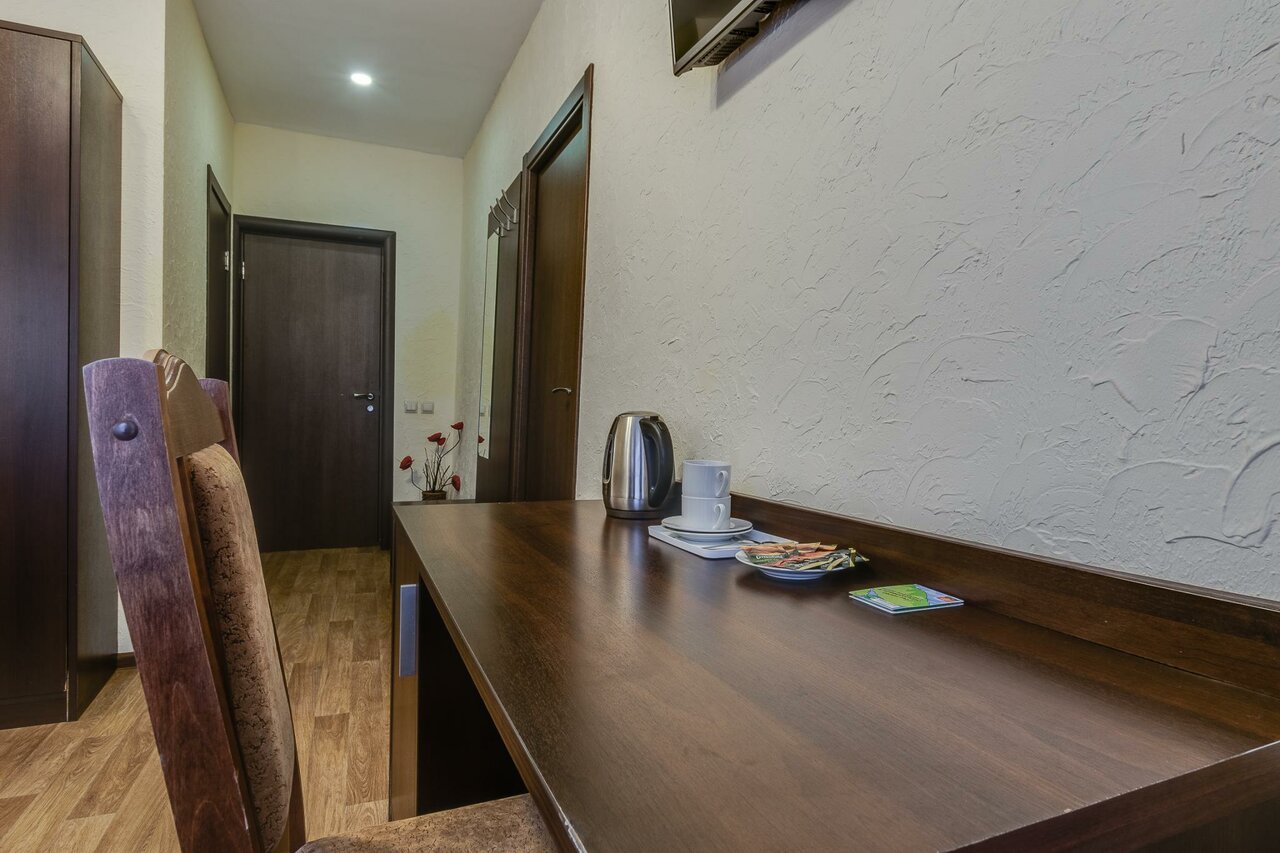 Очень хороший отель. Рядом со склоном. Очень чисто и аккуратно. Тепло. Ехали, очень боялись, что замёрзнем, но было все наоборот. Приятный администраторы Мария и Анастасия. Обязательно вернёмся снова. Завтраки скромные, но за такую цену вполне. Фен не брали. Утюг можно попросить у администратора. Спасибо большое.