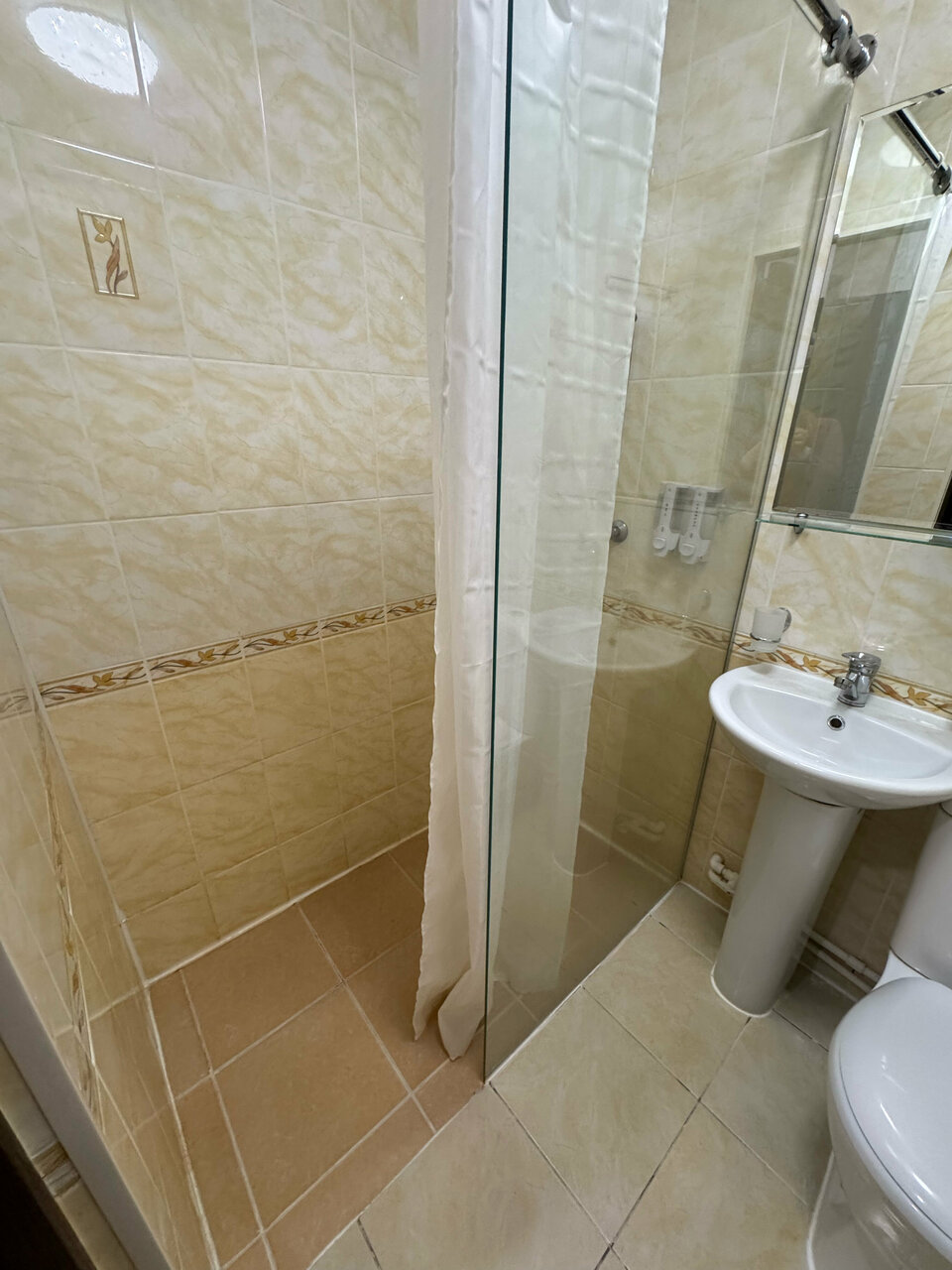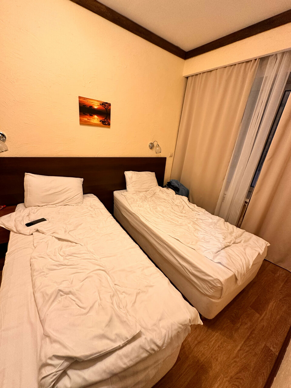 Матрасы сползают, холодильник сломался, душ брызгает во все стороны, пол приходится постоянно вытирать. За такие деньги могли бы и завтрак бесплатно сделать.
