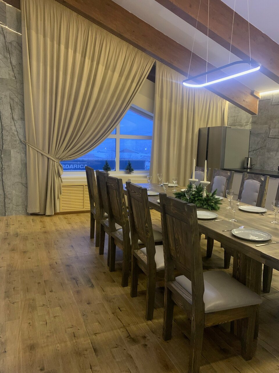 Спасибо большое, мы остались очень довольны! Отметили день рождения сына. В доме есть всё необходимое для проживания и даже больше. Чудесные панарамные окна с прекрасным видом на горы. Грамотное распределение пространства, спальни изолированные, все разместились с комфортом! Дети играли в бильярд))) вечером сходили в хамам, вобщем отдохнули душой и телом!!! Спасибо за такую возможность)