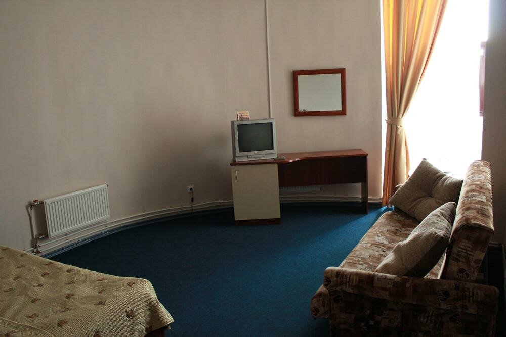Мне понравилось почти всё. Честно говоря, вход в гостиницу немного напугал… Зато номер приятно удивил. К минусам можно отнести звукоизоляцию. Завтрак входит в стоимость проживания. Тапочки, халат. Чистый большой номер. Бассейн при сауне. Очень приятный, доброжелательный персонал. Конечно требуется привести в порядок душевую кабину и стенки бассейна. В номере не оказалось холодильника, что странно. Телевизор, тарелка, стаканы, В ванной жидкое мыло для рук, шампунь и гель для душа в индивидуальной упаковке. Сама атмосфера приятная. Рядом городской пляж. Спасибо за гостеприимство.