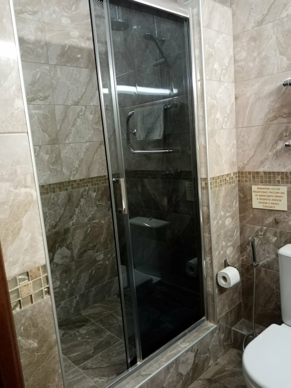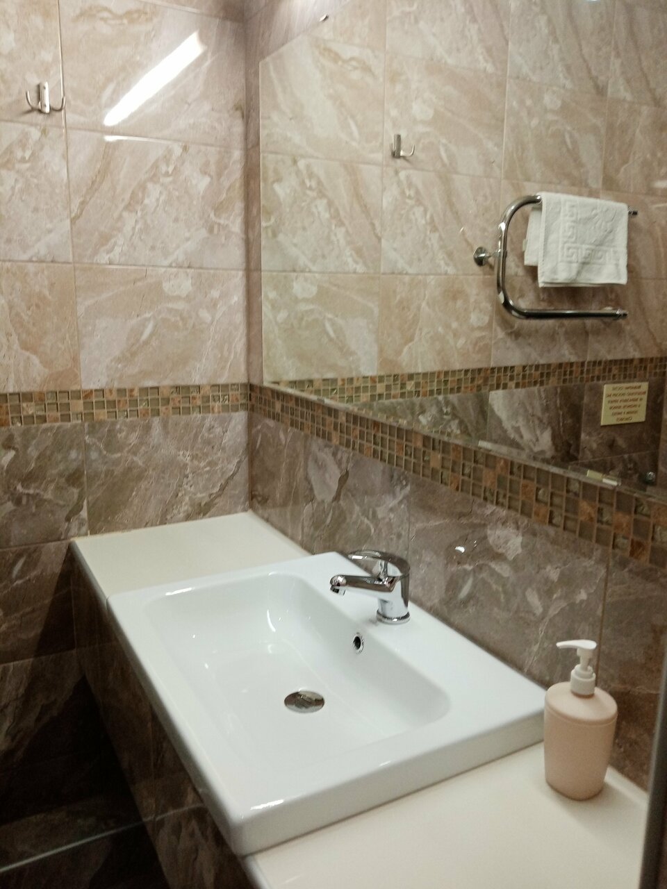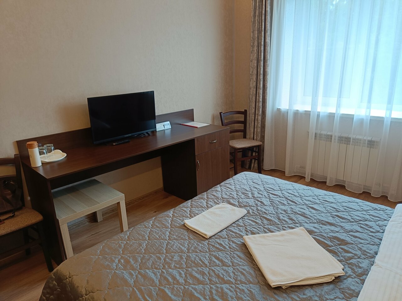 Смешанные чувства от гостиницы и ресторана. Номер 2-ух местный, свежий ремонт, большой телевизор, холодильник. Сан узел чистый, красивый, но при заселении был запах канализации, после пользования душем — исчез. Ресторан не плохой, но в один день к супу принесли майонез, на следующий, как и надо — сметану. Готовят вкусно и хорошо. Завтрак в будни что подадут, была весьма вкусная и сытная запеканка, но мало, добавьте кашу, она не дорогая. В выходной день вместо запеканки — два варёных яйца и пара кусочков сыра и колбасы с хлебом и маслом… на пару часиков хватит Персонал на ресепшен чуть хамоват, возможно из-за контенгента гостиницы или в целом черта малых городов.