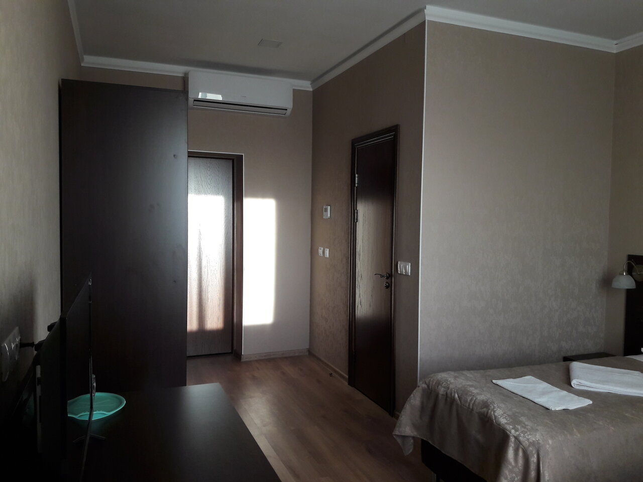 В номере:- санузел- одна двуспальная кровать - кондиционер- стулья- прикроватная тумба;- шкаф- жк-телевизор- Wi-Fi - зеркало;- чай/кофе/сахар/чайник/бокалы- тапочки, душевые принадлежности- губка для обуви