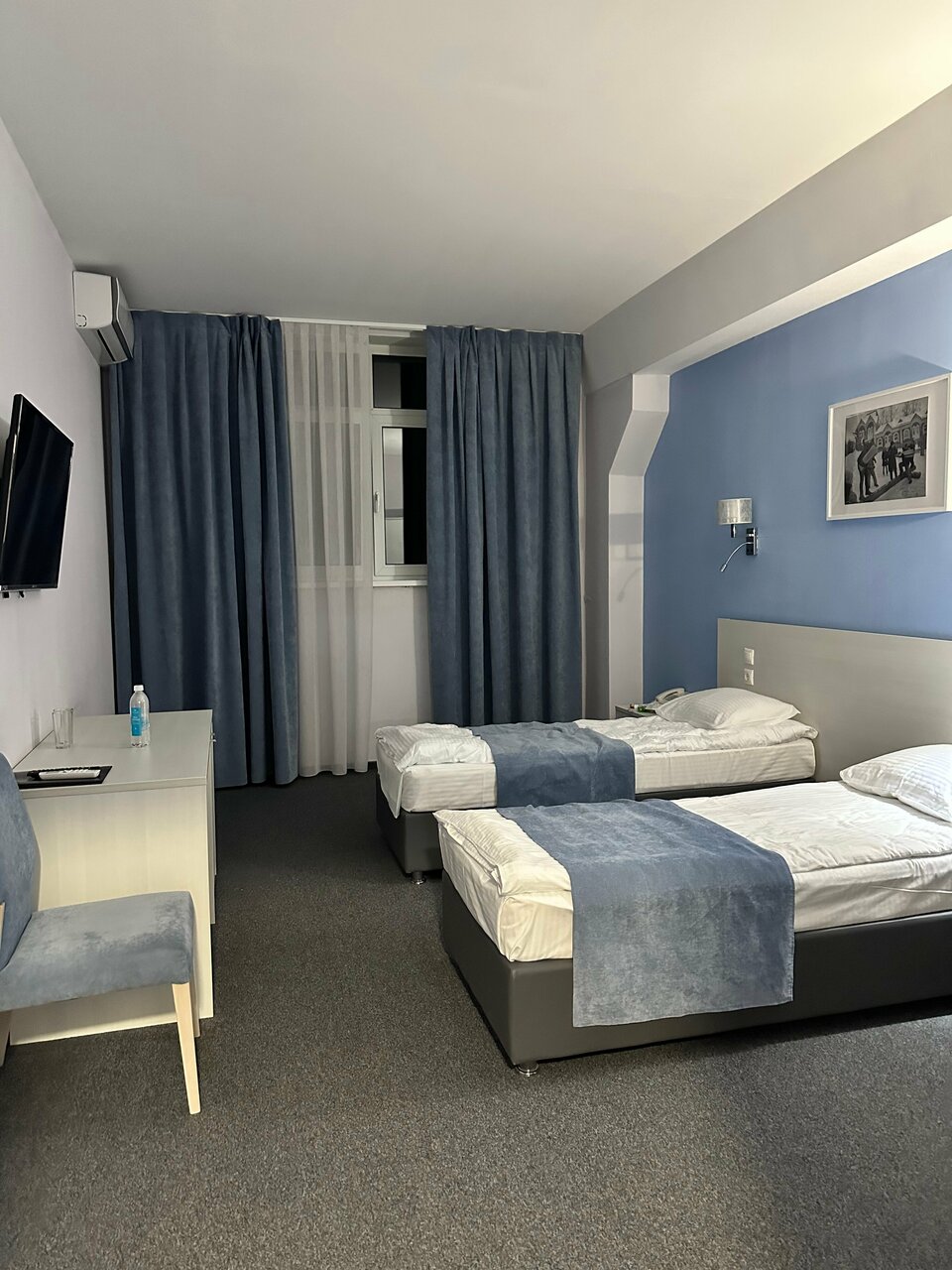 В гостинице хорошие номера. Но, в номерах не убираются. Завтрак такой убогий, это просто позор!!!! Попросил воды, так они пытались её мне продать!!! Качество пищи очень низкое, все невкусно. Омлет это такая подстилка, его нужно разжовывать.