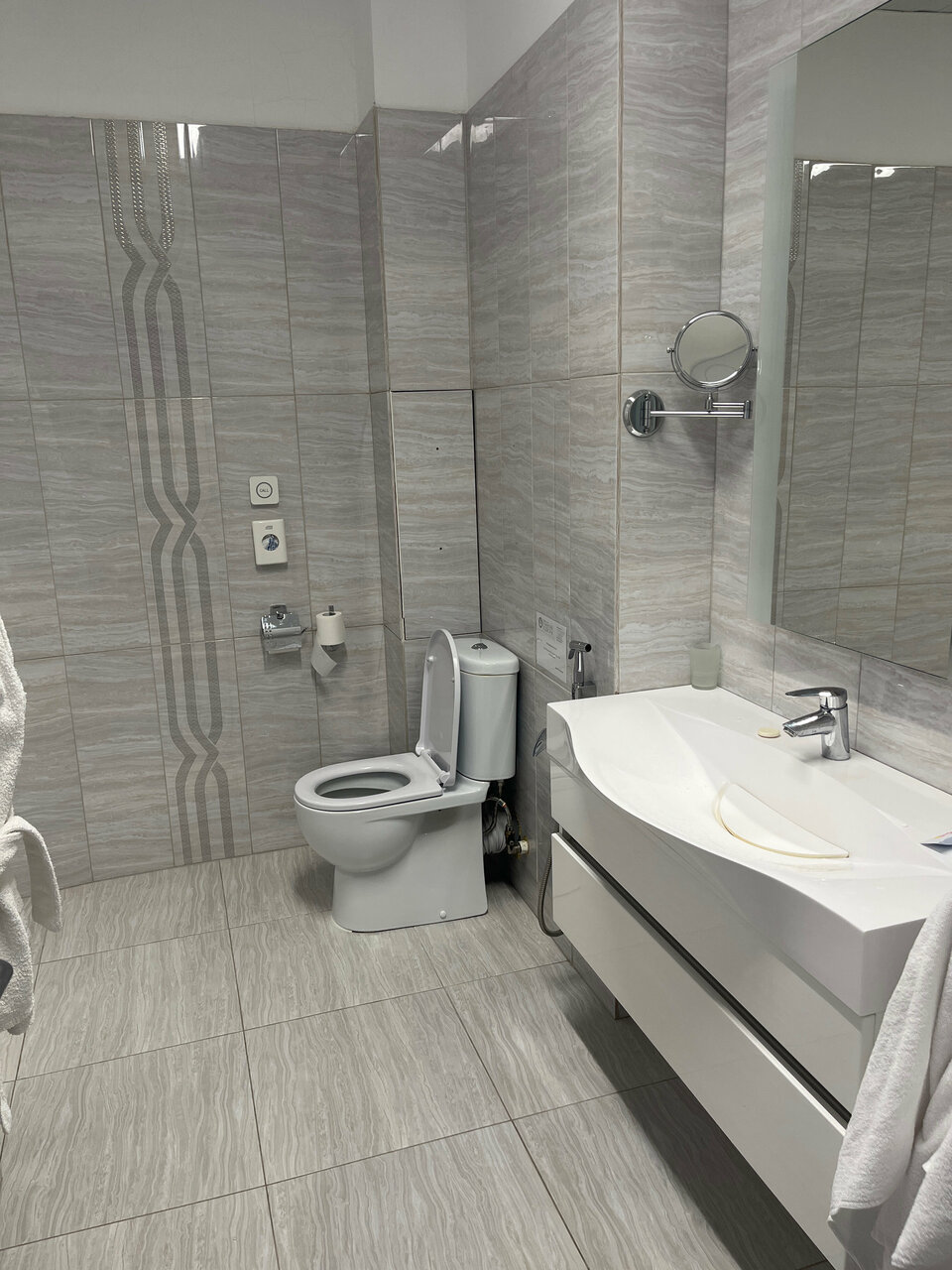 Очень странная гостиница) в номерах нет света, только напольные лампы. Нет одноразовых предметов гигиены. Но ОГРОМНЫЕ номера.