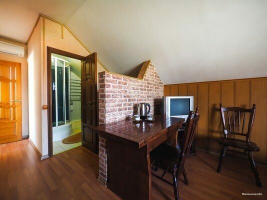 Впервые ожидание и реальность в пользу реальности. Заселялись поздним вечером, без предварительного бронирования, свободен был номер с названием ‘люкс’ (смотря с чем сравнивать этот люкс, конечно). Парковка внутри территории, места много. Приехали семьей: 2 взрослых, подросток 13 лет и малыш 2 лет. В номере 2 кровати односпальных, принесли допспальное место: раскладушка. В номере чисто, это видео и ощутимо. Удивило, что вода хорошая, прозрачная, без запаха и привкуса. В номере все необходимое: шкафы, холодильник, телевизор, чайник, киндер и т.д. Отдельный зачет, что в гостинице есть своя КРУГЛОСУТОЧНАЯ КУХНЯ, готовят сами, достаточно вкусно. На обратном пути тут тоже остановимся. На ресепшене тоже отличный дружелюбный персонал.