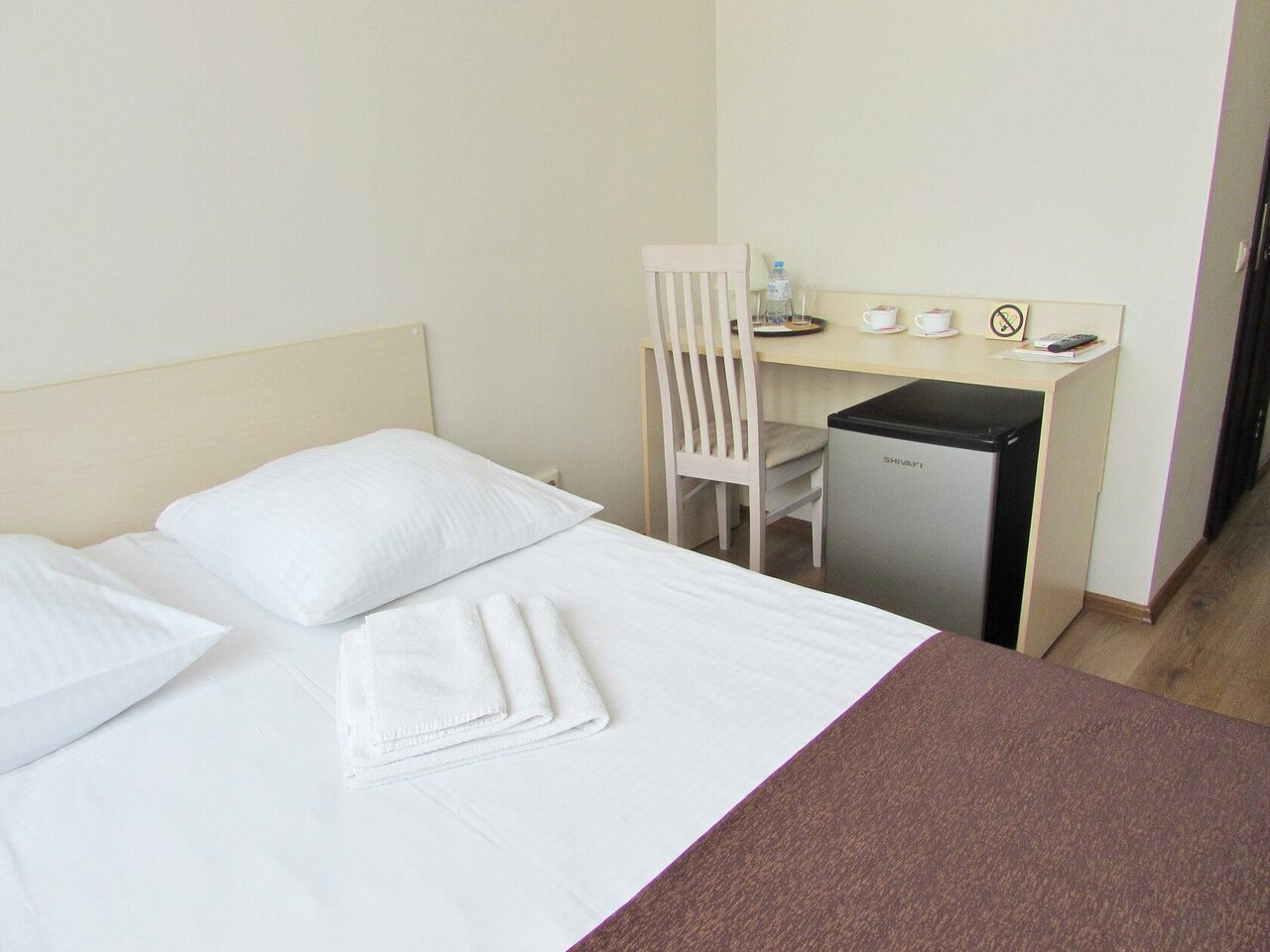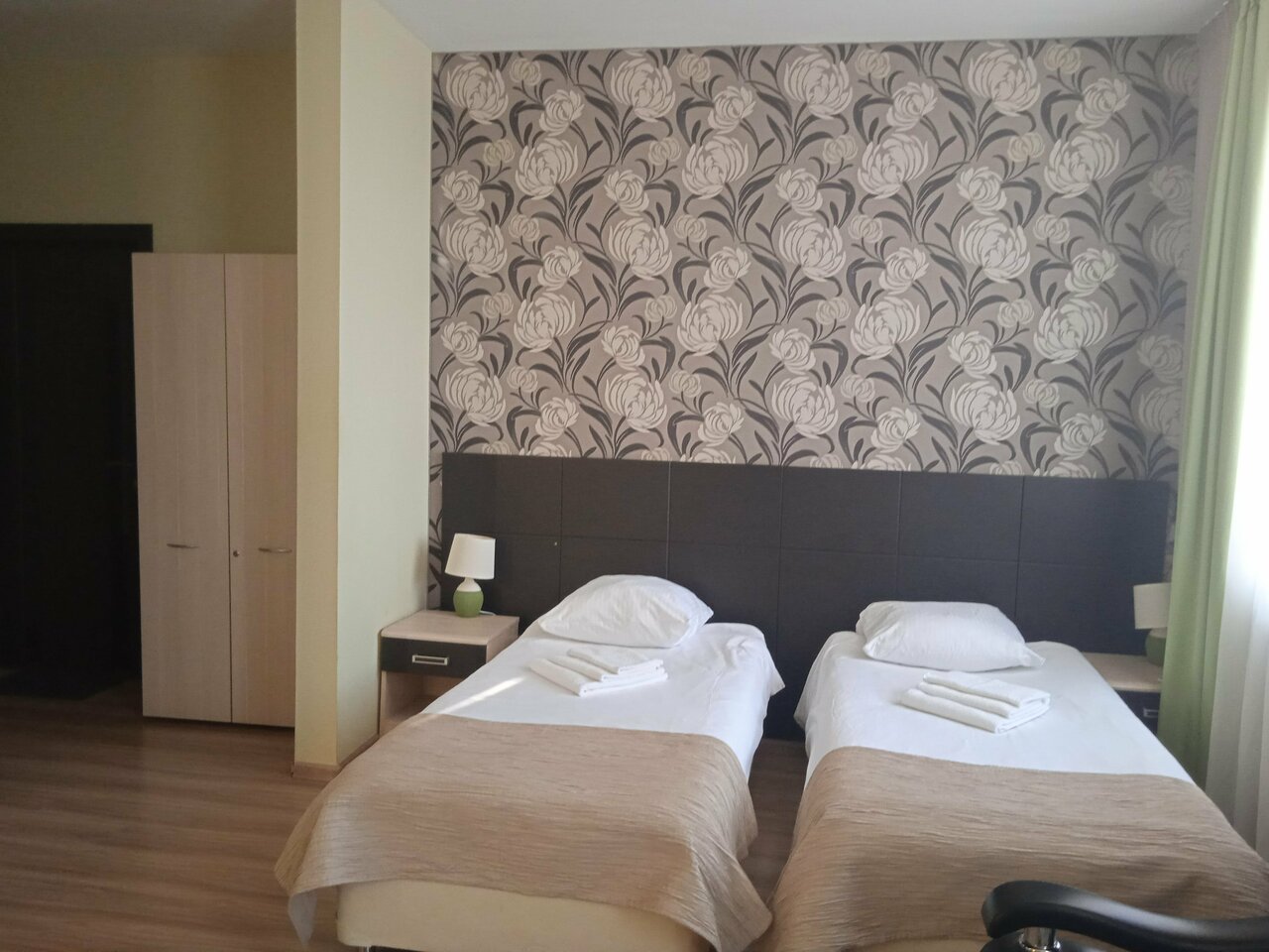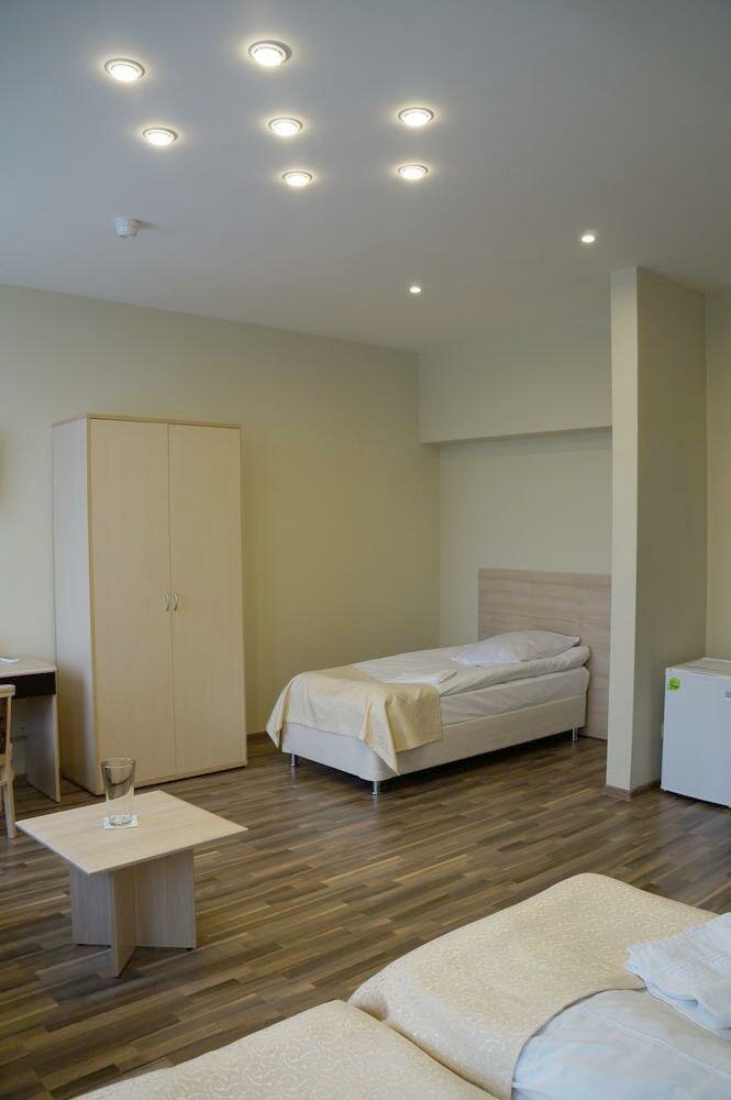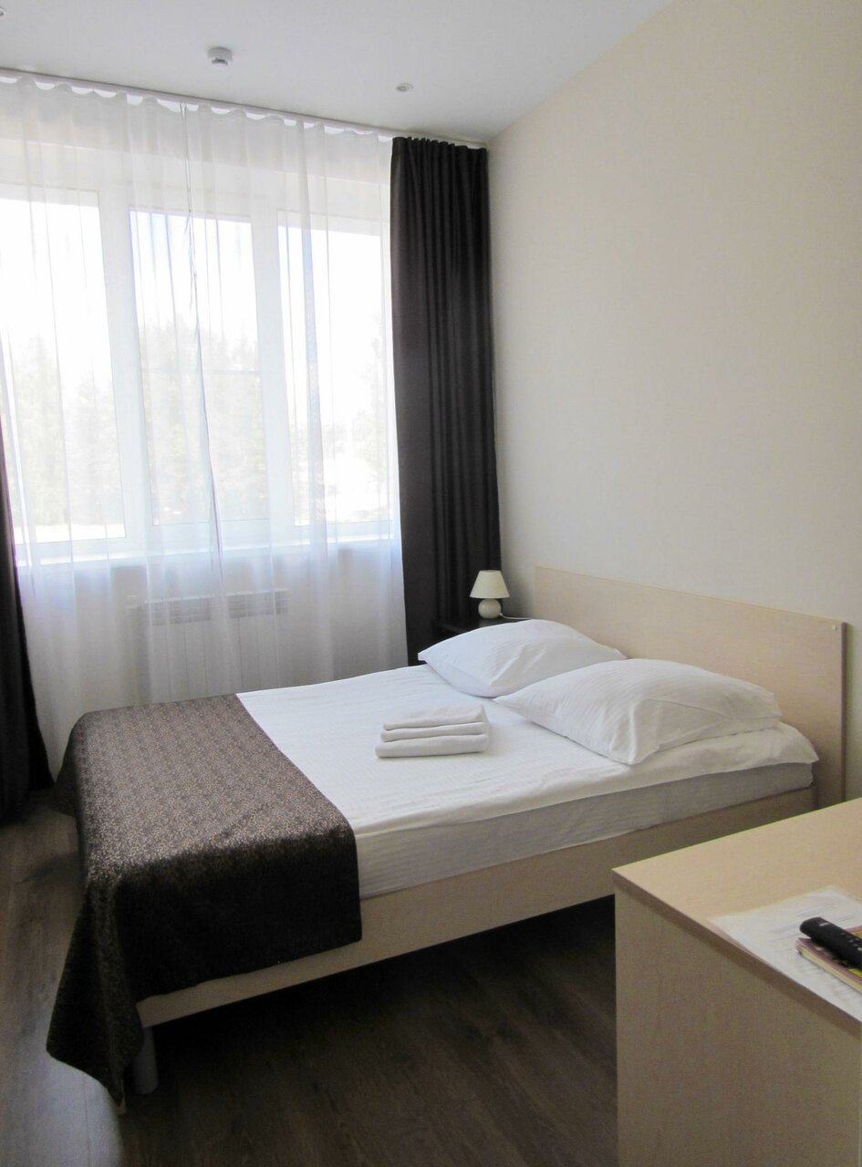 Отель удобно расположен, рядом федеральная трасса. Номер был двухместный, большой. Останавливались в декабре 2023. Вежливый персонал, чисто. В номере халат, наборы гигиенические, тапочки, вода, кофе, можно попросить чайник. Завтрак скромный, простой, домашний. Всё устроило, рекомендую.