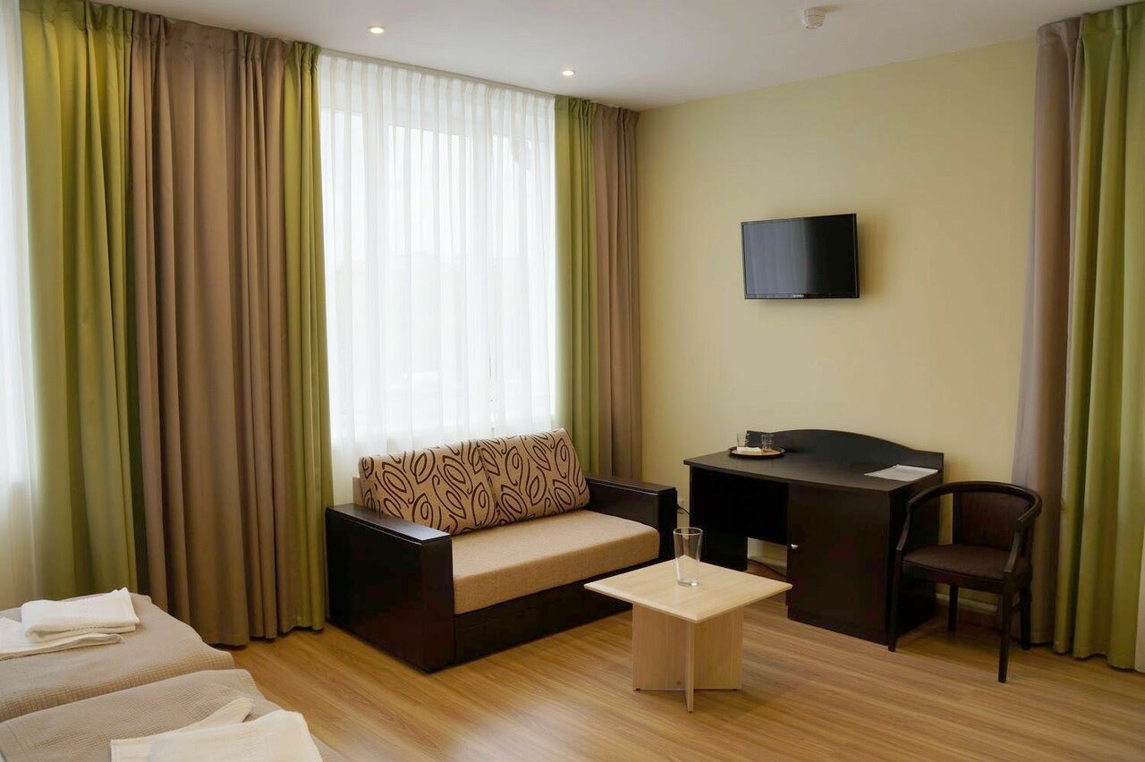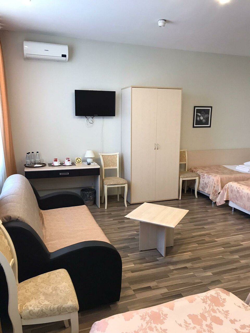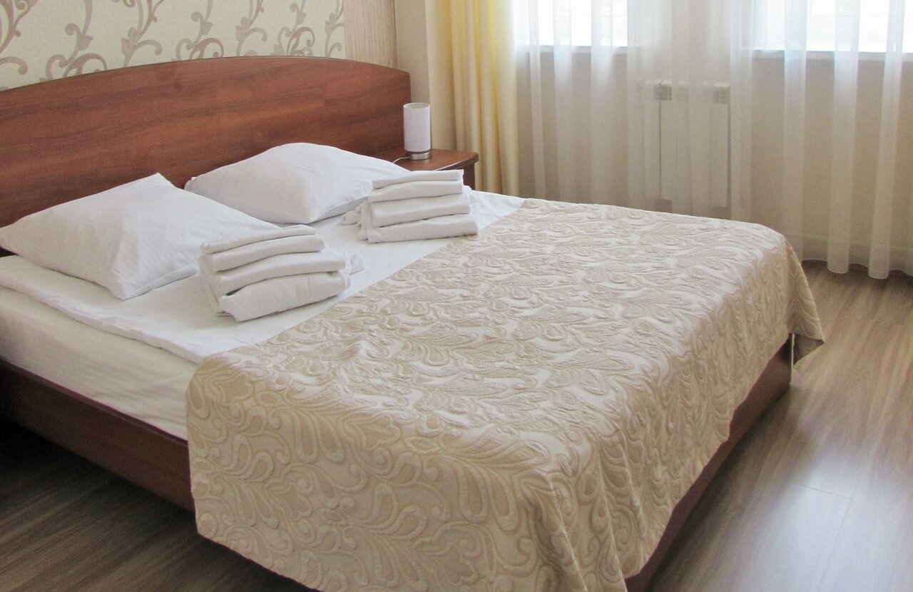 Отель удобно расположен, рядом федеральная трасса. Номер был двухместный, большой. Останавливались в декабре 2023. Вежливый персонал, чисто. В номере халат, наборы гигиенические, тапочки, вода, кофе, можно попросить чайник. Завтрак скромный, простой, домашний. Всё устроило, рекомендую.