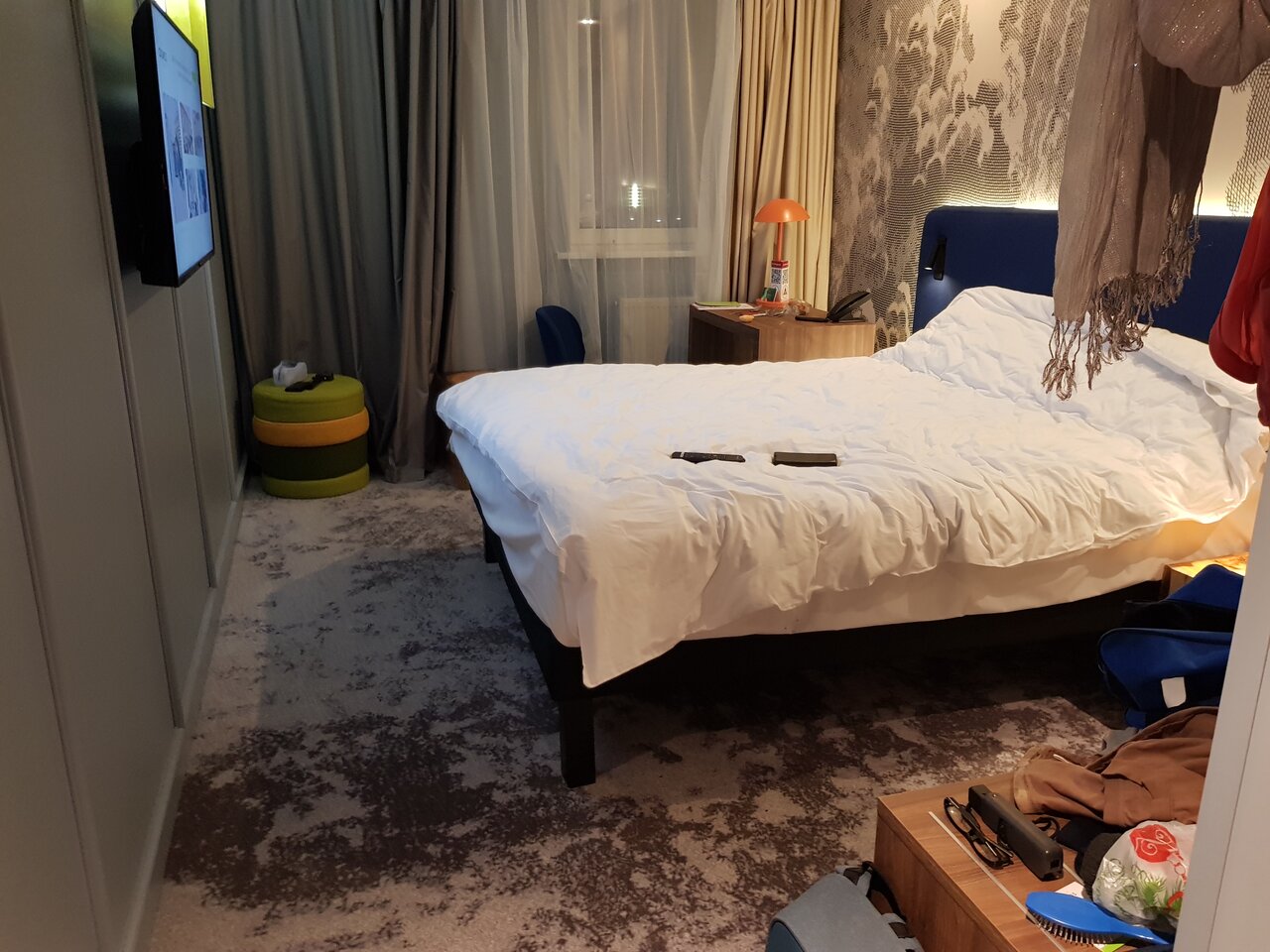 Шикарный отель! Современный, уютный. Белоснежное белье, мыло, шампунь, гель для душа, телевизор, вайфай, чай (черный, зеленый на выбор), растворимый кофе, сахар. Короче говоря, есть всё, чтобы отдохнуть с комфортом после трудового дня!
