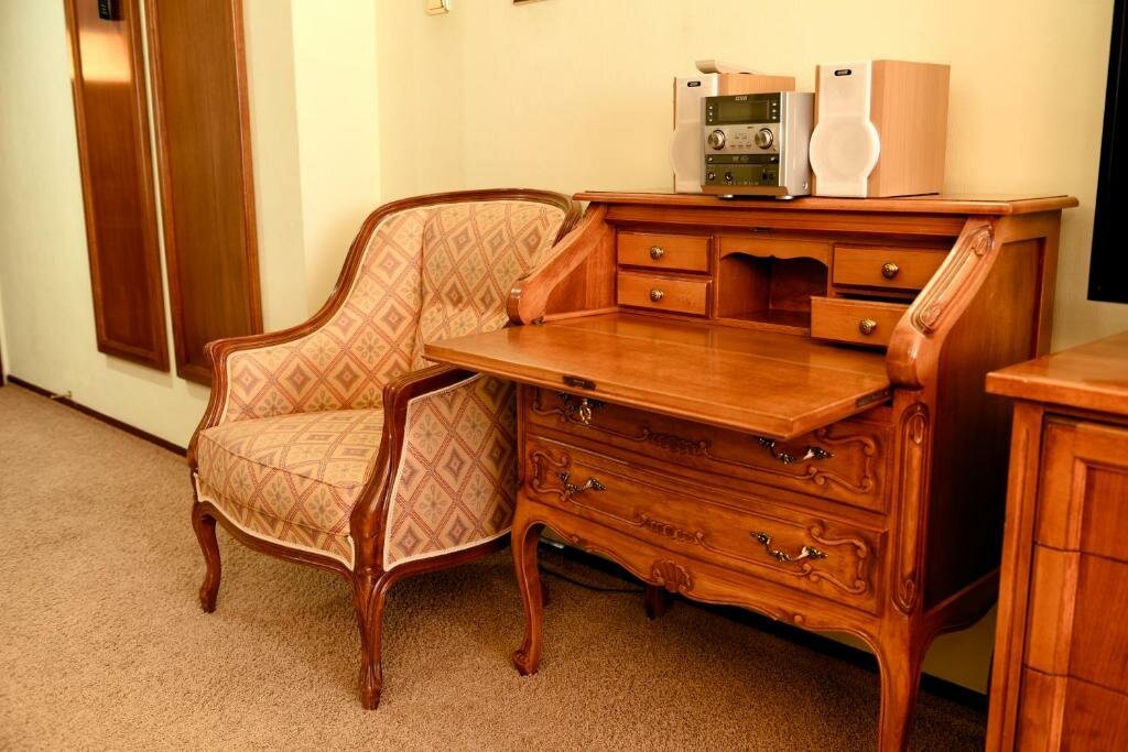 В уютной гостиной Семейного номера категории Люкс для Вас - комфортные кресла и диван, изысканная мебель и современная техника.