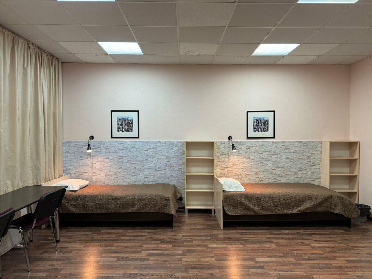 Отличное место чтобы отдохнуть. Да условия несколько спартанские в номере. 2 кровати стулья стол шкаф. А что еще надо?! Общая огромная кухня со всем что необходимо. 2 санузла в которых есть 2 стиральные машины. Можно постирать вещи. Есть сушилка и утюг. Я остался доволен