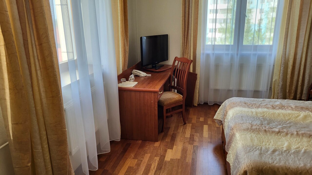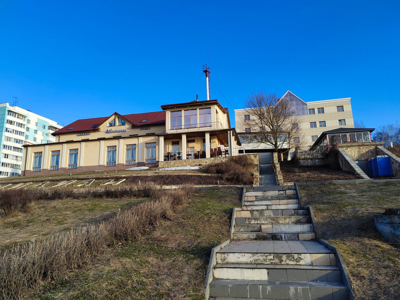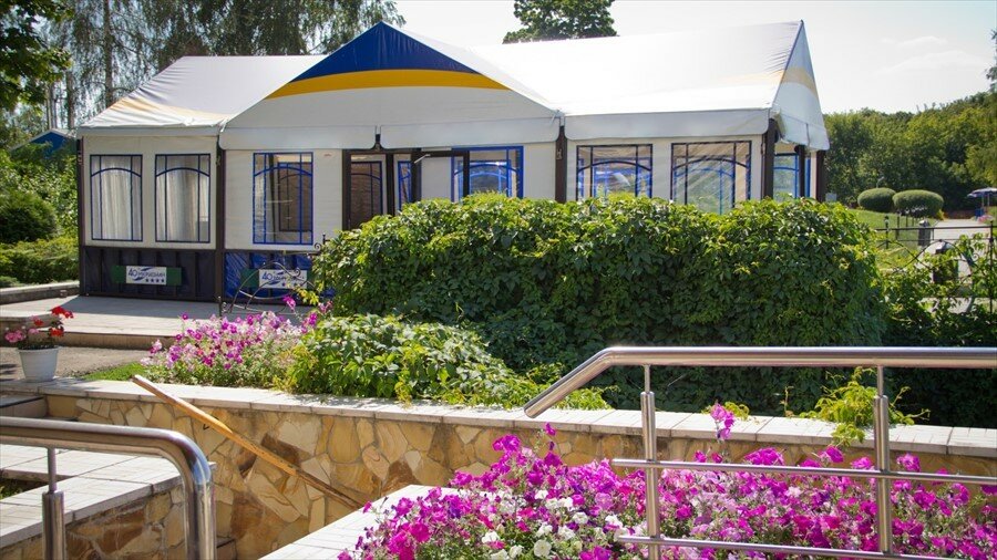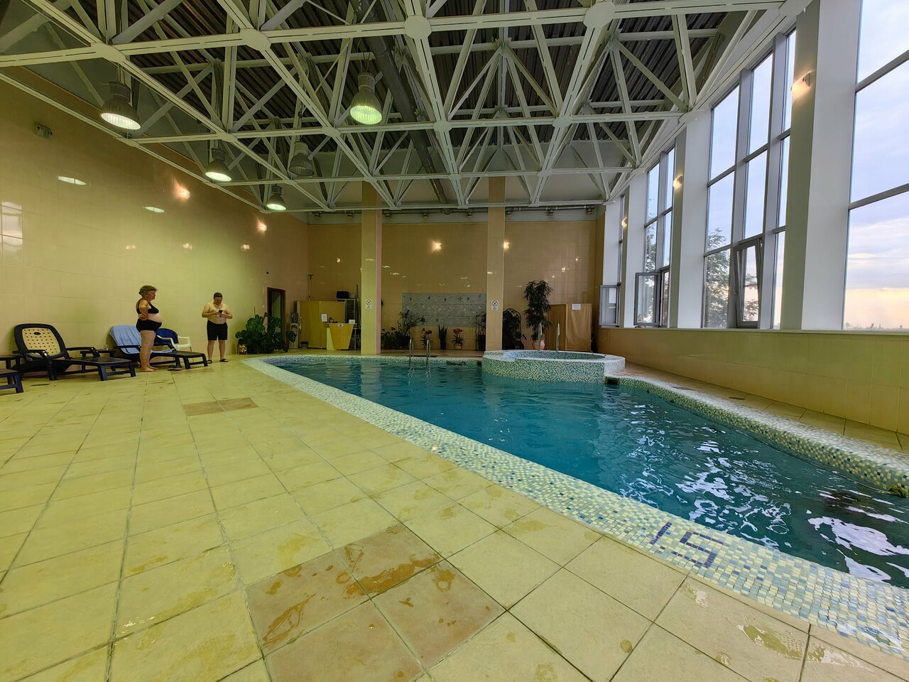 Шикарный отель, в 6 км от центра города. Закрытая территория, есть парковка для машин, много беседочек и прекрасные качели. На территории есть ресторан выше всяких похвал. Очень вкусная еда и обходительные официанты. Из ресторана вид на реку, ну что ещё нужно, чтобы запомнить это надолго. На территории есть бассейн 10 метров, выдаются полотенца и ключик от кабинки. В идеале 1-3 человека, но это уж как повезёт. С номером повезло, т.к. бронировали с видом на речку. Есть халат, тапочки. В номере телевизор, холодильник, халаты, тапочки, есть сейф. В душевой были крючки, чтобы повесить халат их обычно никогда не бывает, а тут такое счастье. Уезжать не хотелось.