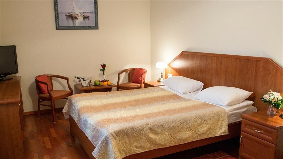 Пока пятёрка: финская баня, бассейн, хамам, всегда чисто в номерах, завтрак на твердую четвёрку. Слесарь скоммуниздил мой разводной ключ, пока ищут слесаря и ключ уже неделю, напишу, как найдут 🙂
