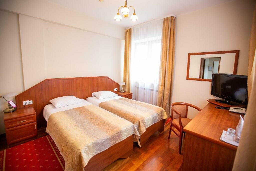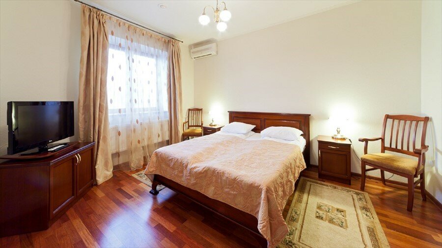 Услуги: — Номера от 3800 ₽/ночь с завтраком, Wi-Fi, ТВ, мини-баром, санузлом. — Крытый бассейн, сауна, хаммам, тренажёрный зал, теннисный корт, бильярд. — Ресторан, бар, летняя веранда, банкетный и конференц-залы. — Бесплатная парковка, камера хранения, прачечная, лифт. — Для детей: игровая комната, площадка, бесплатные кроватки (0-3 года). — Разрешено проживание с животными (платно).
