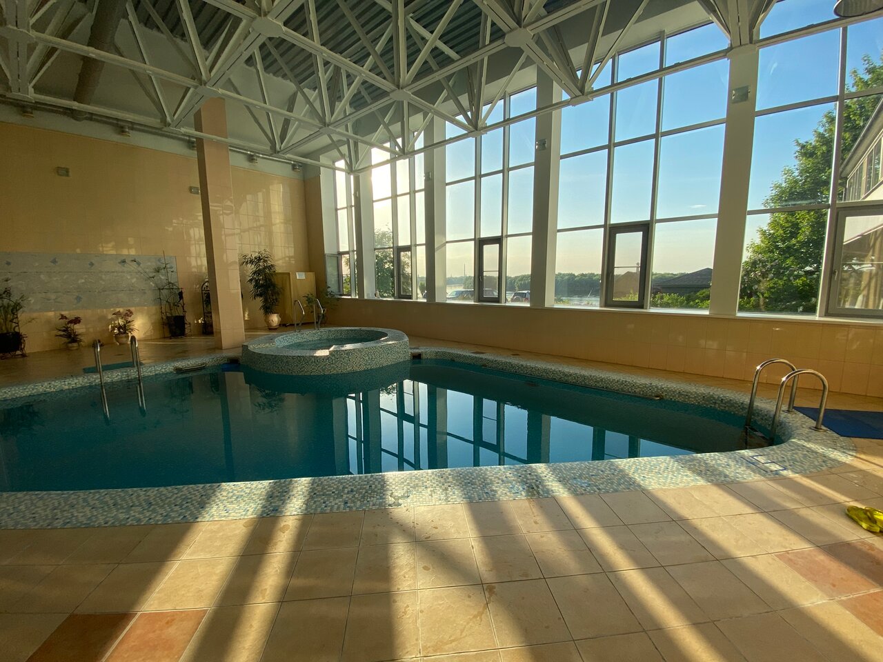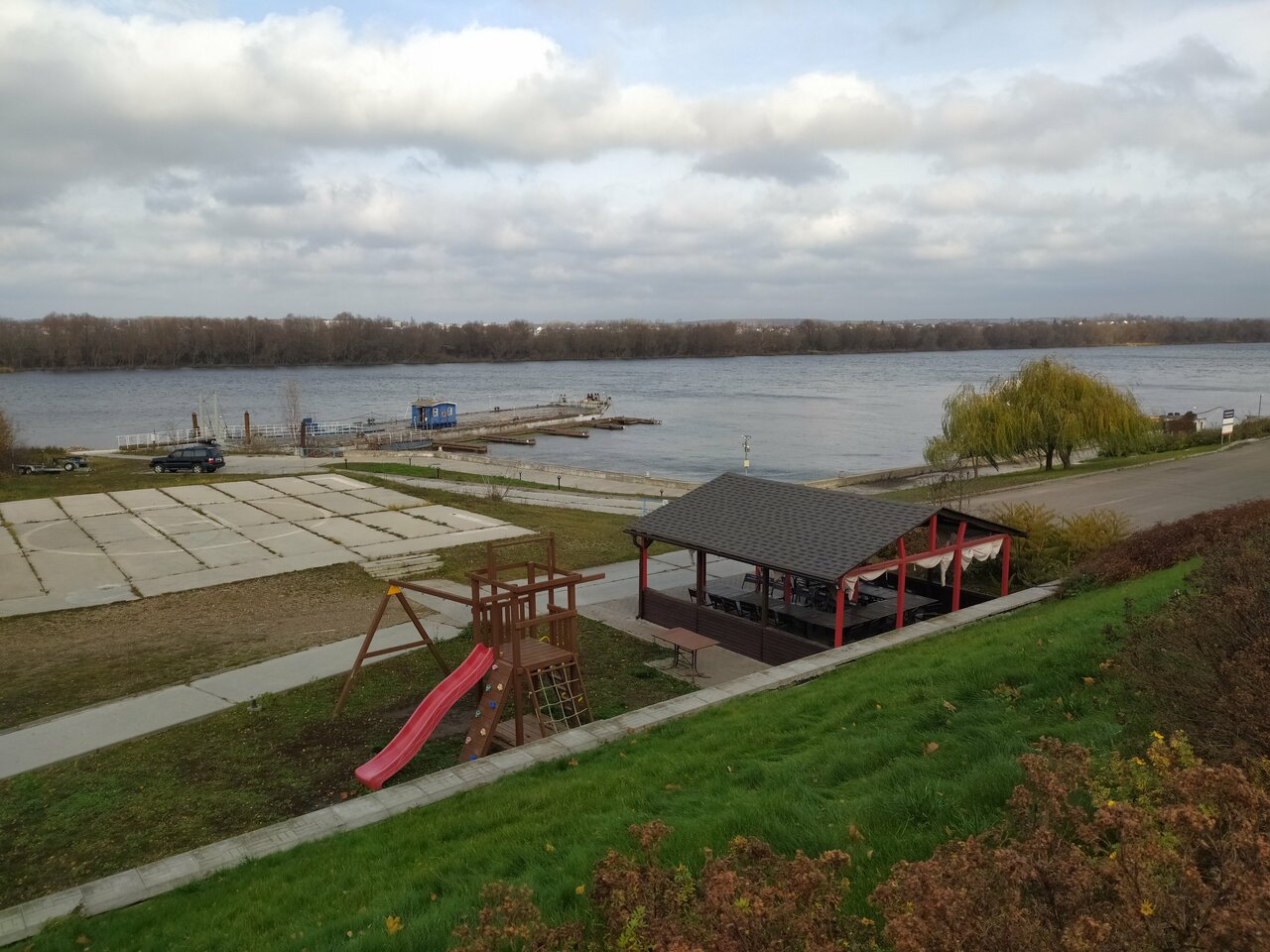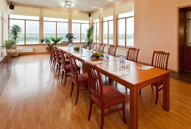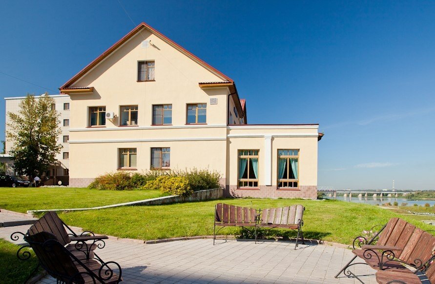 Хороший, но уставший комплекс. Хороший крытый теннисный корт. Вроде неплохой вид на реку, но облезлый причал вгоняет в уныние. Лавки для созерцания причала под стать ему — облезлая краска немного щекочет кожу и делает затяжки на одежде. Ресторан не блеснул вкусностью блюд. Добротная столовая 4++. Удобная стоянка. Чистота во дворе и номерах. Приятный и вежливый персонал.