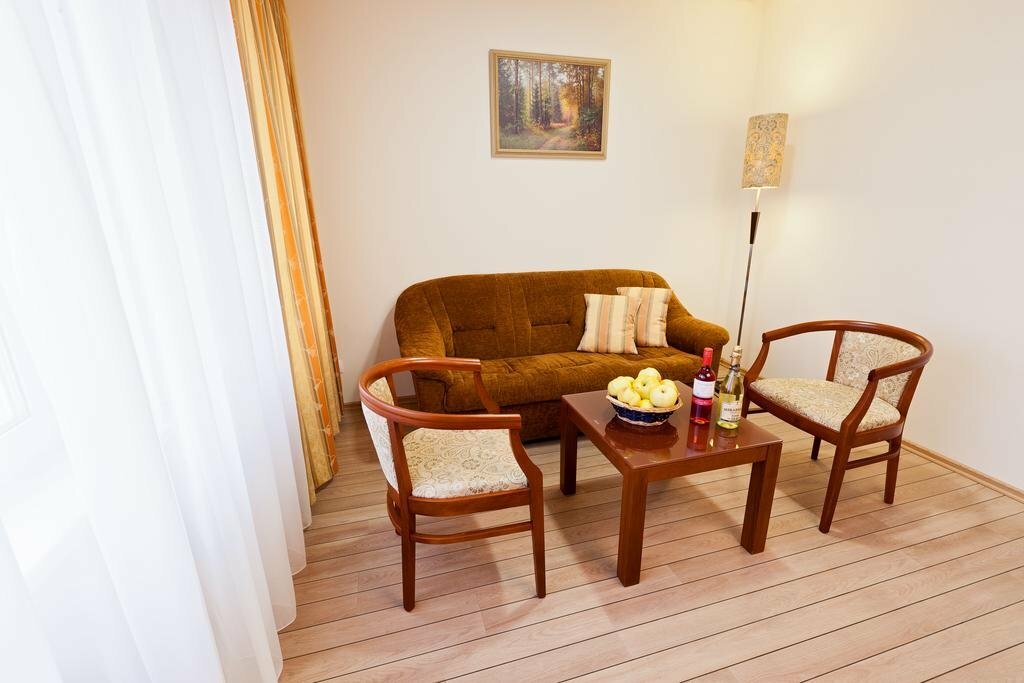Отличный отель, жили в люксе, все понравилось. Расположение отеля лучше невозможно придумать, все рядом. В номере идеальное белье, полотенца, удобная кровать, мебель в хорошем состоянии, чистый санузел, есть все необходимое. Хороший завтрак, нормальный ассортимент: омлет, яйца, сосиски, макароны, каша, два вида блинов, немного овощей, йогурты, нарезка из колбас и сыра. С удовольствием при случае остановимся здесь ещё.