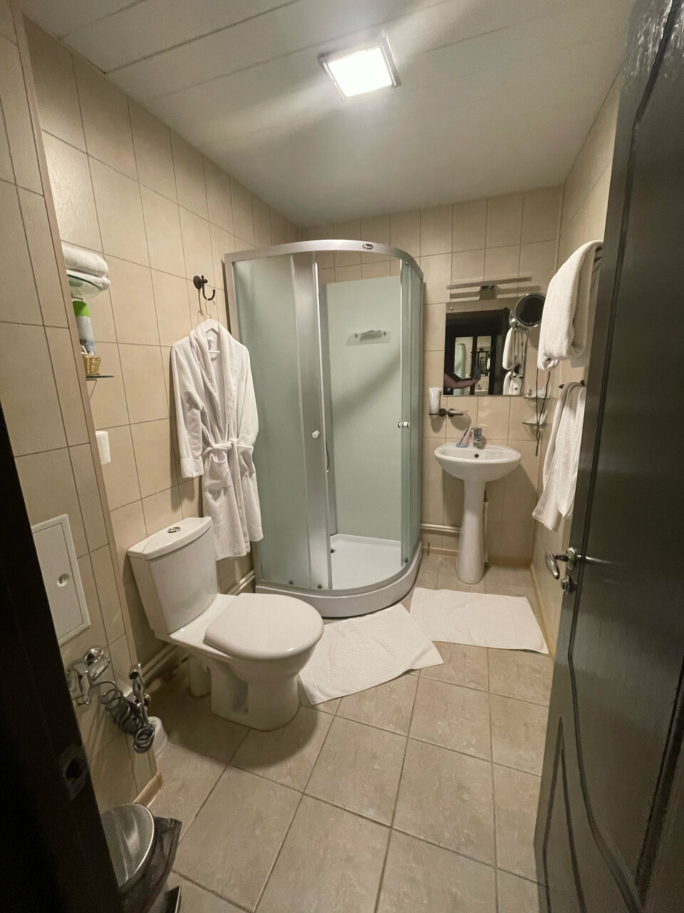 Отель неплохой, хорошее расположение, есть лифт, просторные номера, белоснежное белье, удобная постель, НО отвратительные администраторы. Заселялась 10.06.23 в смену Елены по подарочному сертификату стоимостью 8000 руб, стоимость номера была озвучена при бронировании 3800, две ночи 7600 (это расположение номера на стоянку), по деньгам оставалась разница, которая была прикарманина ею со словами, что мне ничего не должны! Ладно, но еще ужаснее, что при полном заселении проводят свадебные мероприятия! Хотите-не хотите слушайте грохот и ждите окончания! Хотелось пожелать навести порядок и относится к гостям отеля именно как к гостям!