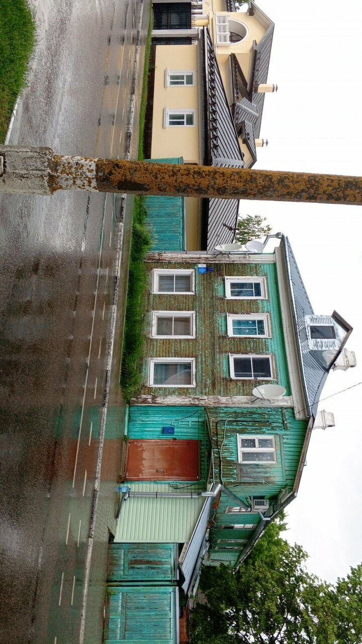 Деревянный барак. Все проходящие мимо дома туристы и прочие пешеходы заглядывают в окна. Шоу за стеклом вам будет обеспеченно.