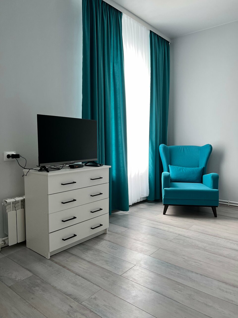 Апартаменты с двуспальной кроватью и диваном. До 4х человек.