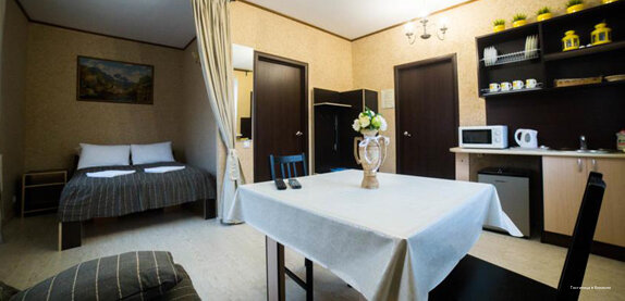 - Общая кухня с посудой и чайником.; Закрытая парковка.; Вкусные завтраки (блинчики, йогурт).; Красивый двор.; Лояльные цены.