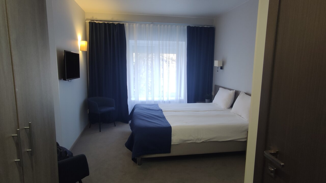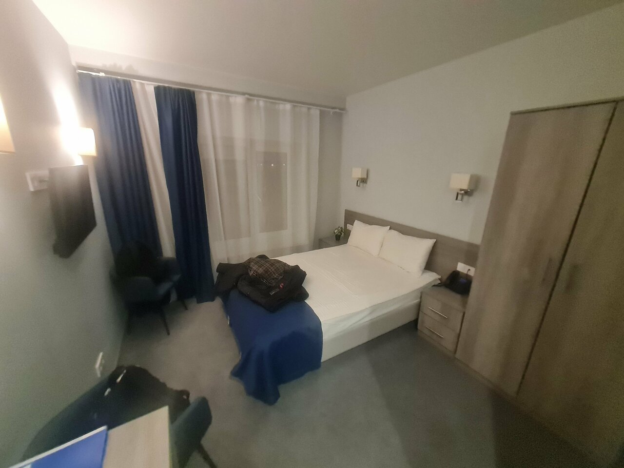 Хорошая гостиница в центре города. В номере есть полотенца и даже халаты и тапочки! Мое замечание, что в первую ночь ужасно дула вытяжка в номере, отчего я даже замерзла. Сказала администратору, на следующий вечер все стало намного теплее и тише! Других нареканий нет! На завтрак была каша с пиццей, в другой день омлет с кексом