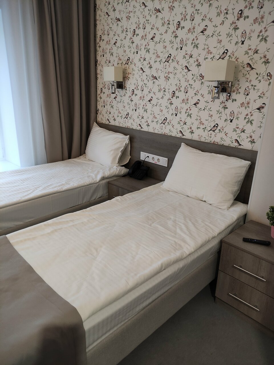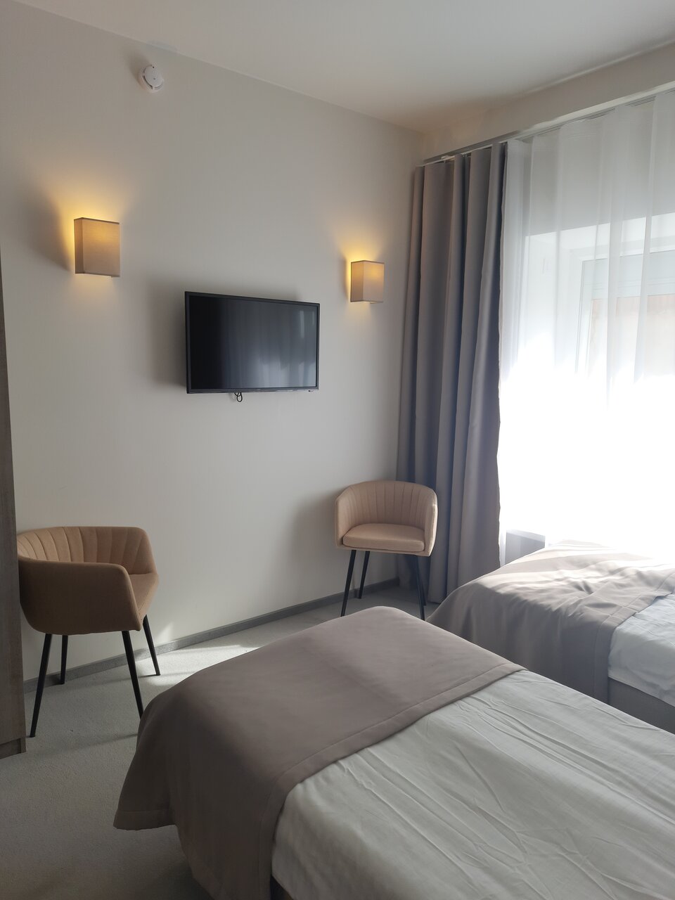 Бронь на 2 ночи. 30.04-02.05. Номера соответствуют фото на сайте. Новые , современные. По количеству 20 номеров всего на одном этаже. Из минусов , это звукоизоляция. Может нам немного не повезло. Был заезд с детьми, которые бегали по коридору от одного номера к другому и громко разговаривали с 7 утра. Причем взрослые ничего не предпринимали. А администратор сказала, что нужно договариваться. Хотя я считаю, что это нарушение порядка в отеле. И уборка на 2 день не проводилась.