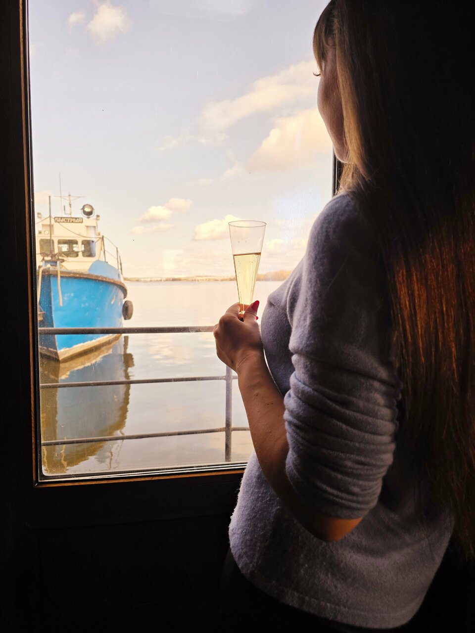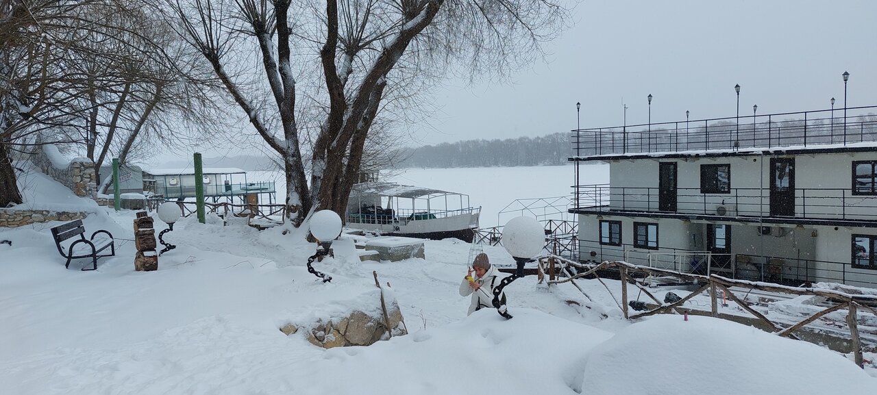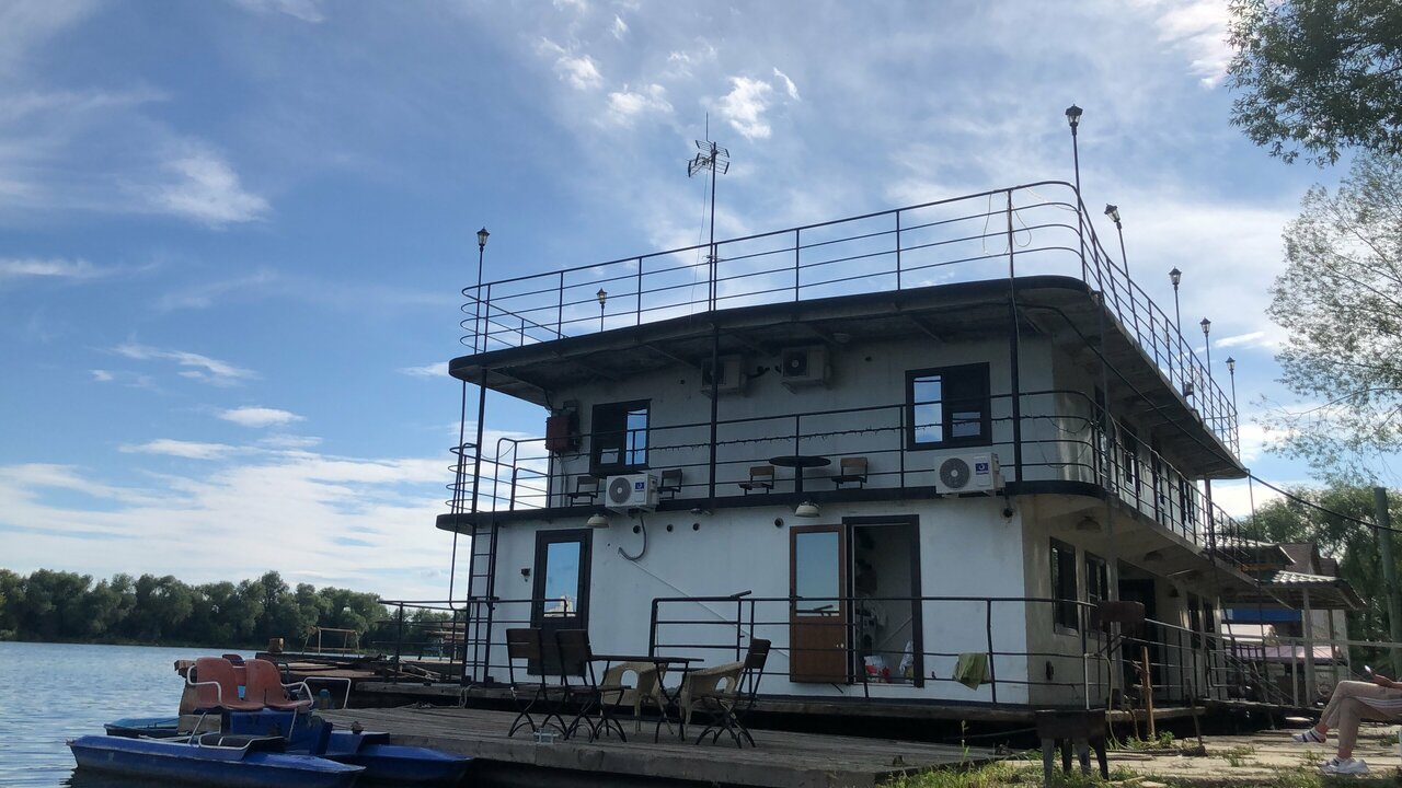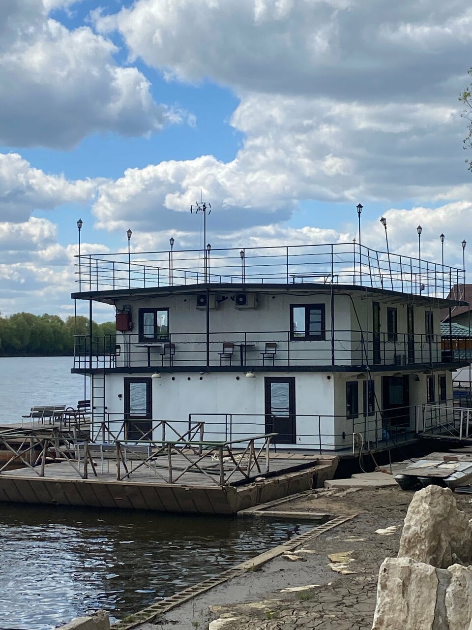 Место конечно очень интересное. И задумка супер! Живёшь как будто на корабле. Виды такие, красота! Номер не большой. Но все что нужно есть. У каждого выход на балкон-палубу. Там и столики стоят у каждого. Вечером есть где посидеть, полюбоваться закатами. Персонал хороший, все покажет, расскажет, пледы нам вечером дали. Мы останавливались на одну ночь, приезжали на машине. Без машины можно на такси. Но транспорт нужен, потому что находится удаленно и в районе промзоны, то есть пешком не пойдешь. Территория большая, есть коллекция старых автомобилей. Но как то не ухожено. Нужно ещё поработать над этим и тогда будет супер! Летом однозначно рекомендую. Дети вообще в восторге от этого места. Такой дом на воде, птицы поют… Кругом природа.