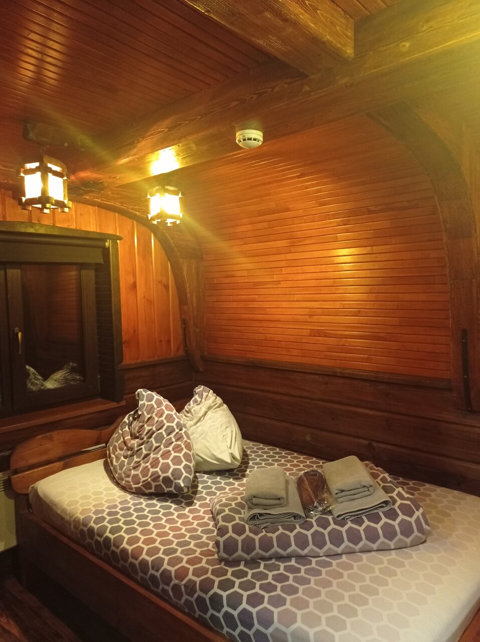 Нереально крутое место, которое стоит прямо на Оке! Совсем немаленькие каюты, отделанные деревом и ковкой, чистое бельё, общая чистота номера и всей гостиницы. Вкусные завтраки, можно что-то из еды или напитков докупить в заведении, но закупиться провизией лучше заранее, т.к. ближайший магазин находится не близко. Гостиница сделана с душой — и это чувствуется. Вернусь туда ещё в номер с баней, хоть и самой поездки в Коломну в планах нет — для меня теперь этот город, как приятный бонус к посещению данного гостевого дома)))