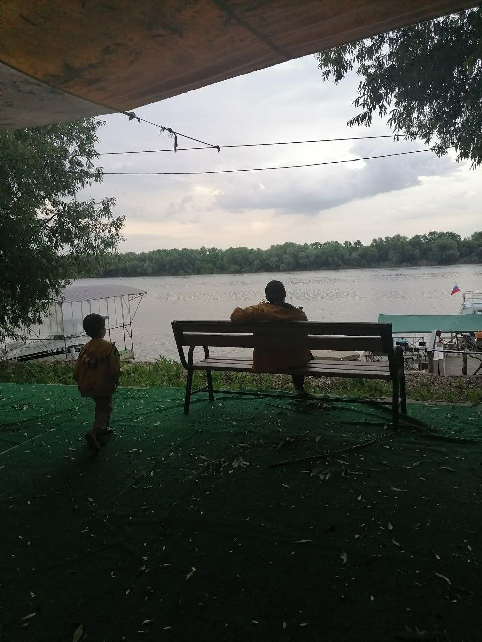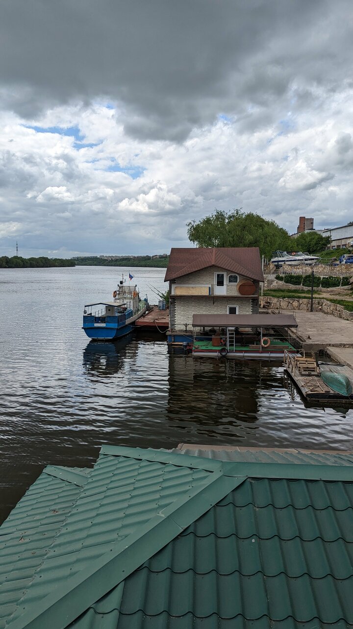 Прекрасное место на Оке. Взяли номер на двоих, санузел в номере. Есть чайник, телевизор, чашки , стаканы и чай. На этаже есть кулер. На территории можно рыбачить купаться и пожарить шашлык. Можно взять в прокат плавучую беседку, стоимость 3000 р. Можно воспользоваться холодильником и микроволновкой, на кухне. Кухня работает с 8:00 до 23:00. Есть завтраки, но надо предупреждать за день, больше еды тут нет. До магазина 15 минут ходьбы. Рассчитывайте силы, так как подниматься и спускаться не очень, крутой подъем. Заезд на территорию: заезжаете за ворота и держитесь левее, есть 2 крутых спуска. Кстати, из центра можно доехать на трамваае 1,2 и 6 . проходите до пятёрочки, далее на право.