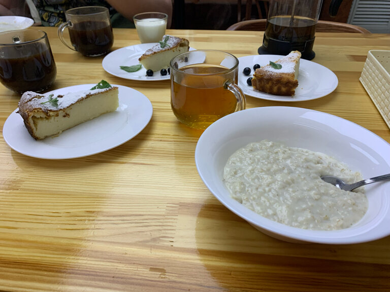 Приехали в Коломну на пару дней. Заселились Мой год. Нас четверо: взрослых+2 ребёнка. Номер однокомнатный с кроватью и раскладным диваном, миникухней. Туалетные принадлежности есть, в номере чисто. Наш номер выходил в сад, вид красивый. И окон много.Завтрак в отеле: чай/кофе, каши, омлет, ватрушки и пирожки. Вкусно, по-домашнему. Красивая ухоженная территория вокруг отеля с прудиком, цветами,печкой(видимо мангал) и павильонов для чаепития. Рекомендую.