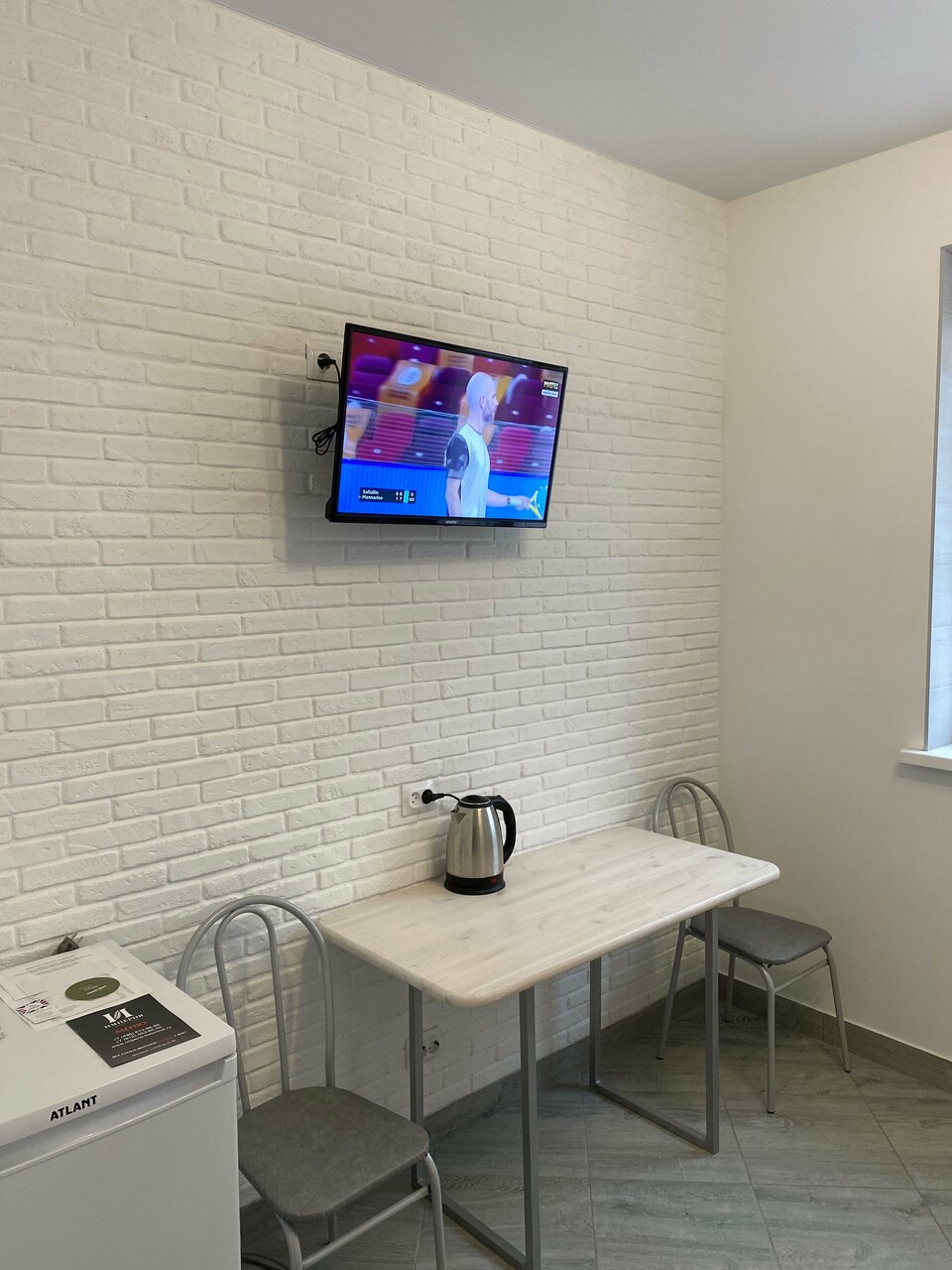 Шикарные апартаменты и сервис. Всем рекомендую. Теплые полы, удобства в номере, без сквозняков, тихая улица. В номере чайник, посуда, холодильник.